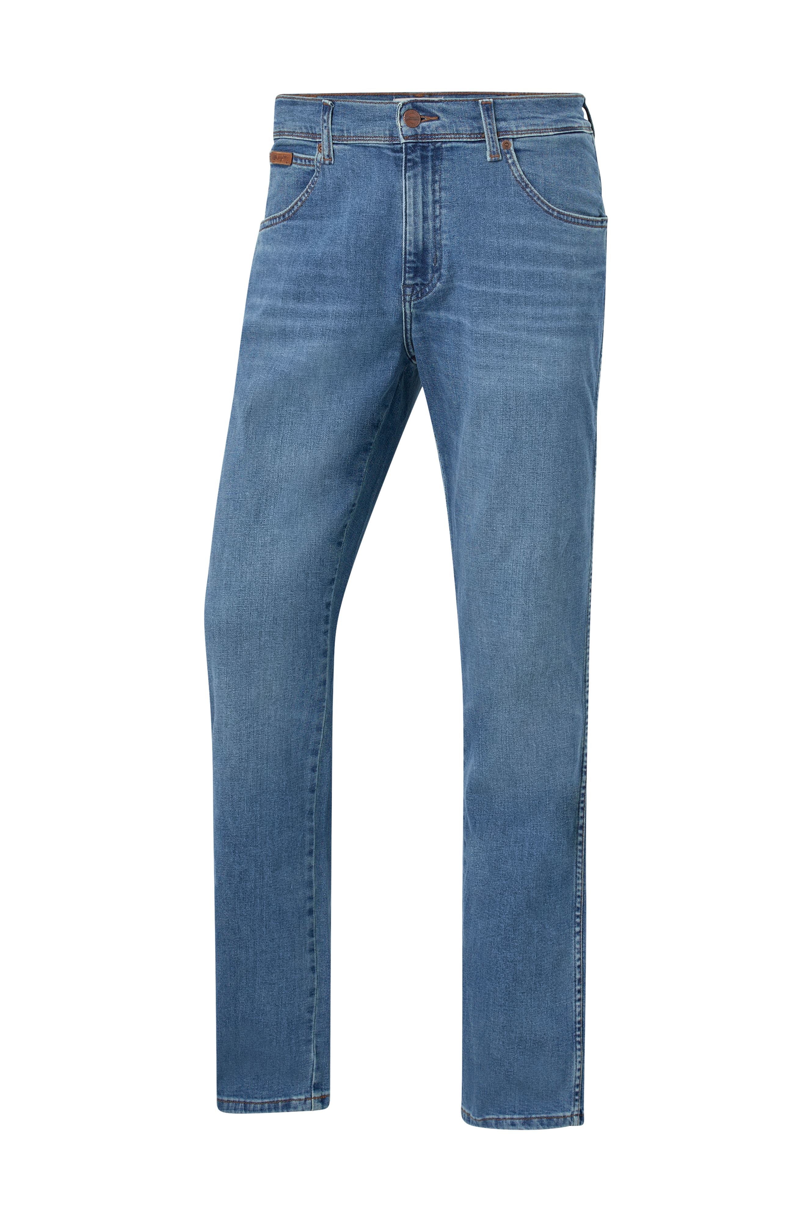 Jeans i stretchdenim med lige ben. 5-lommemodel med lynlås i gylpen.