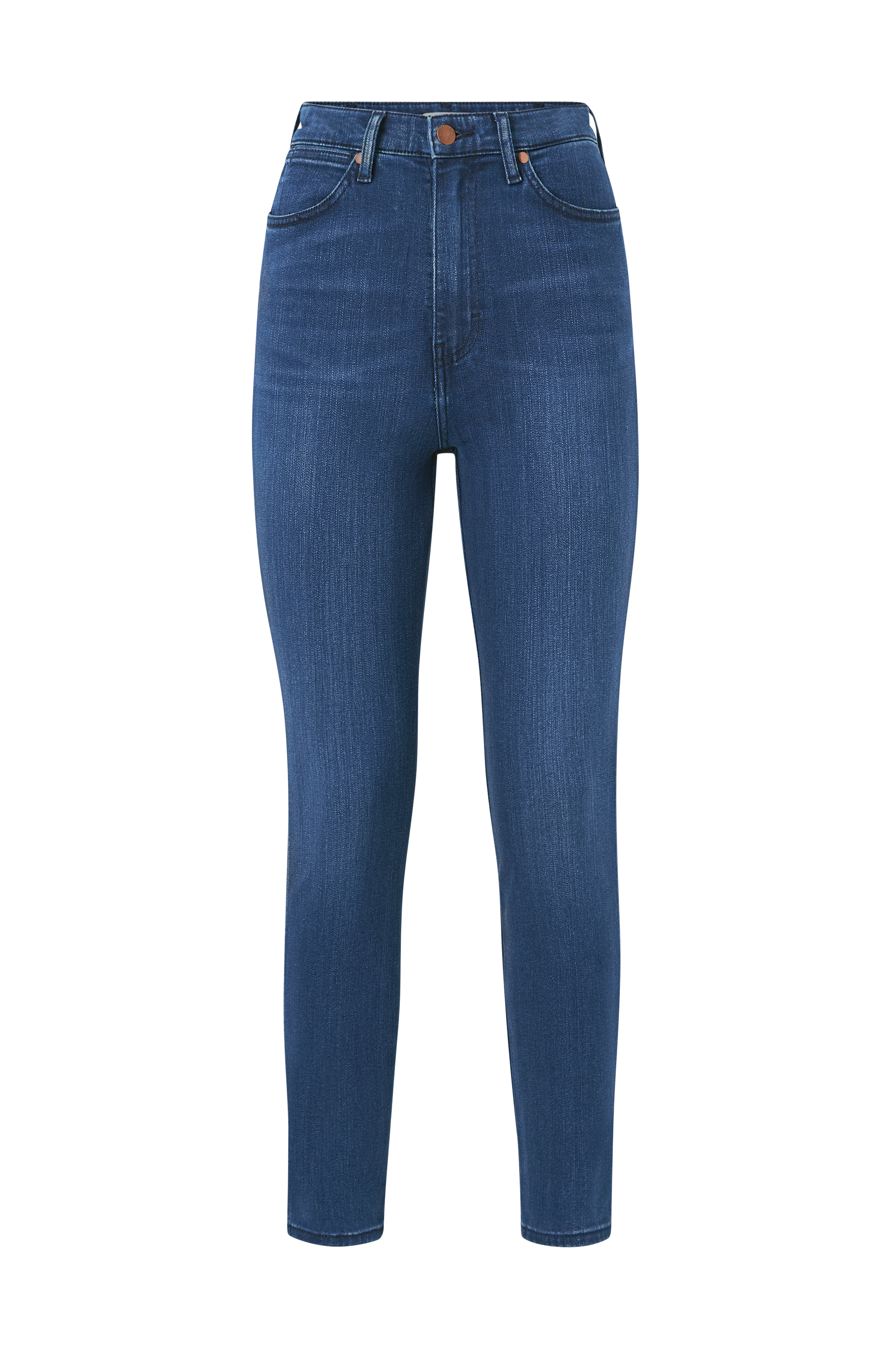 Jeans Wriggler High Rise Skinny fra Wrangler med høj talje og smalle ben. Lynlåsgylp og fem lommer. Blød kvalitet med stretch.