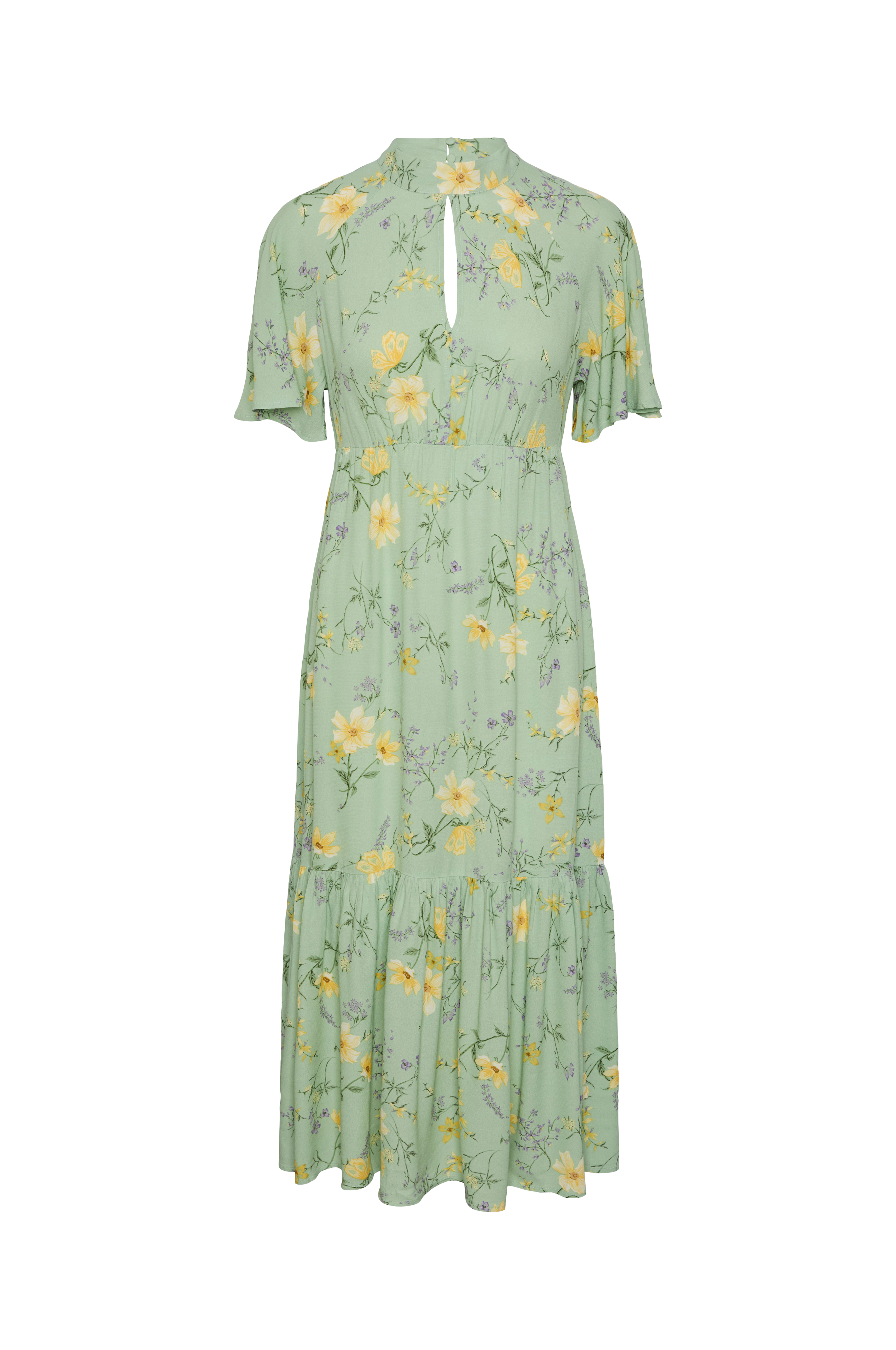 • Figurformede model med elastisk talje• Lille opretstående krave med ventilation foran og bagpå og knap i nakken• Kort, bredt raglanærme• Bred volant ved nederste kant• Længde: 130 cm i størrelse S