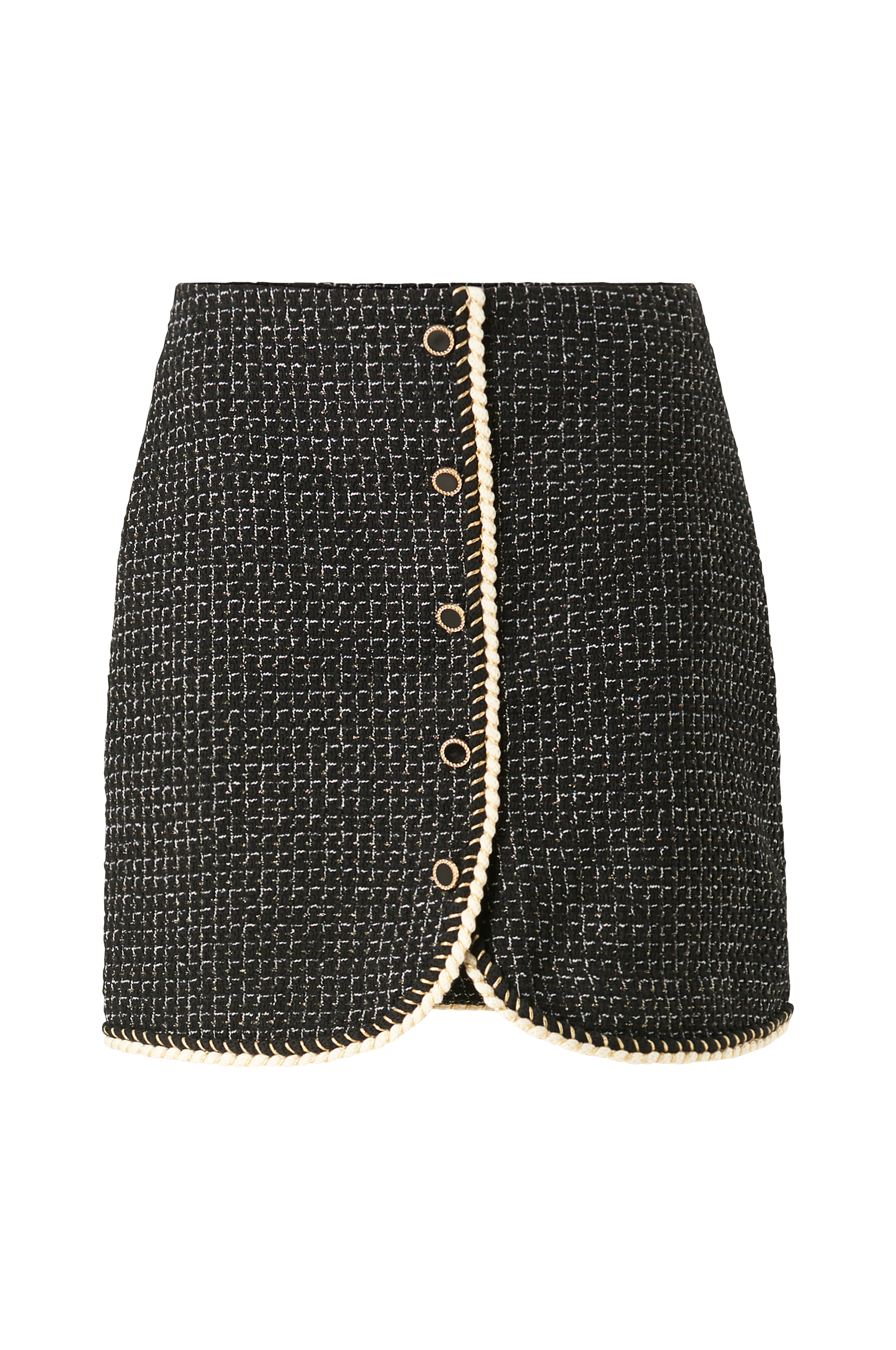 • Kort, glitrende model• Dekorationsknapper foran• Skjult lynlås i siden• Foret• Længde: 43 cm i størrelse S