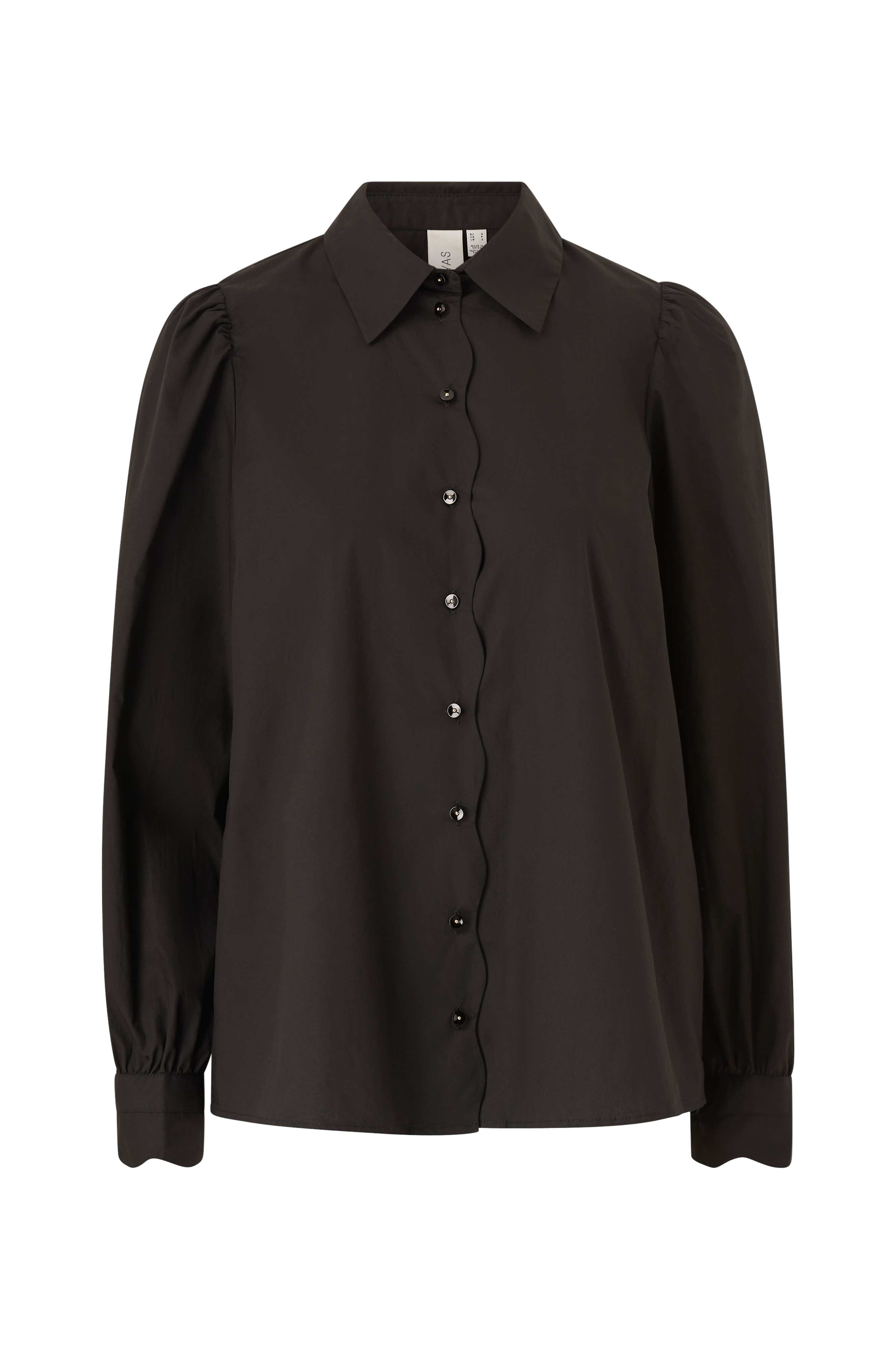 • Bølget knaplukning foran• Lange ballonærmer med manchet