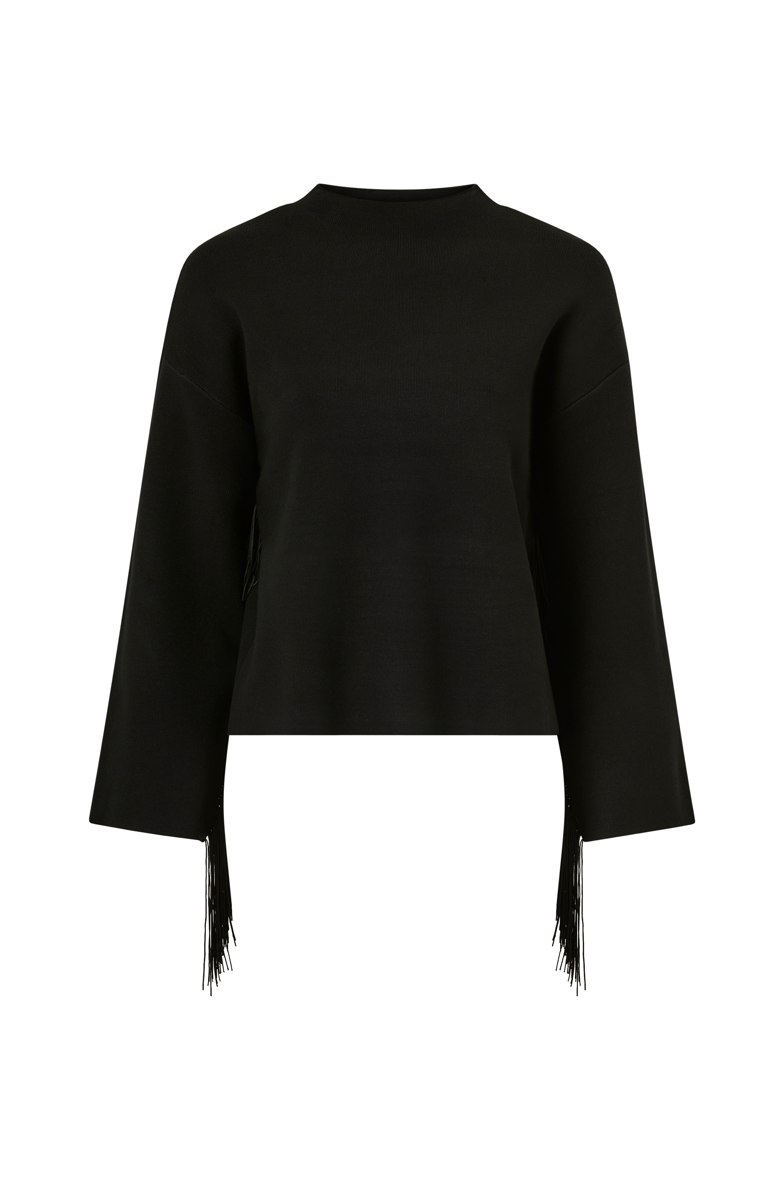 • Trøje i viskoseblanding• Nedsænkede skuldre• Frynser på ærmerne