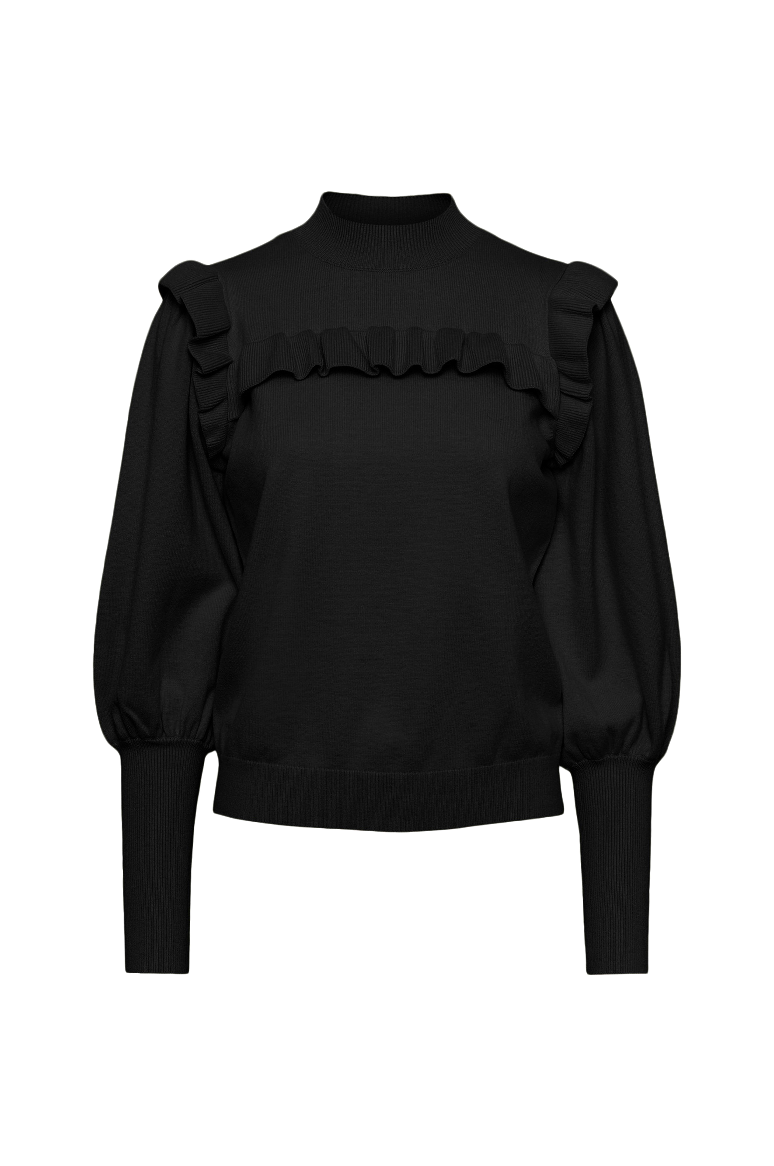 • Påsyede, ribbede volanter oppe foran og omkring skuldrene