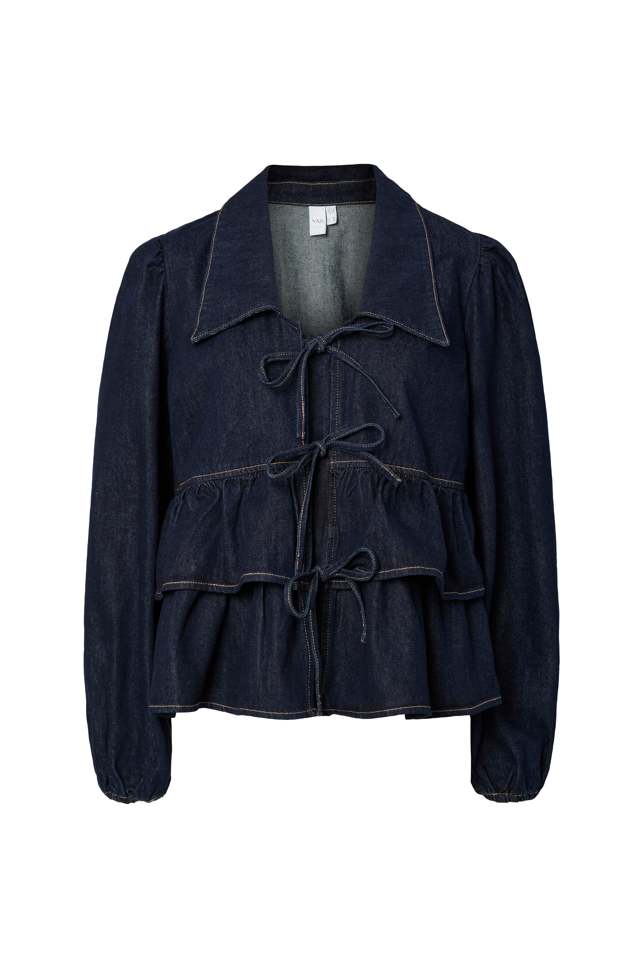 • Bluse med snørelukning• Krave• Lange ballonærmer• Volanter nederst• Afslappet pasform