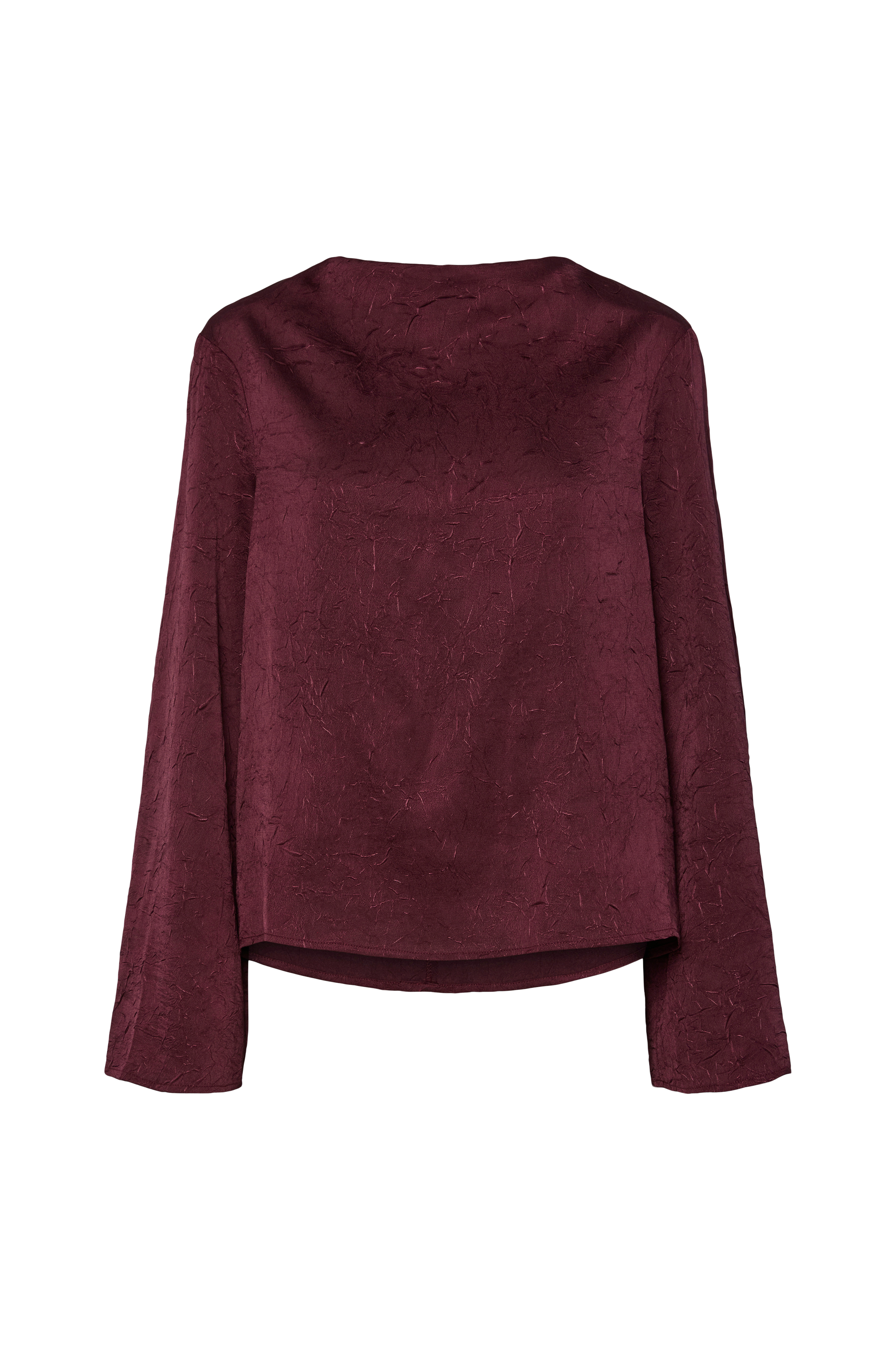 • Behandlet bluse• Draperet halsudskæring• Slids med knap i nakken• Lange ærmer• Normal pasform