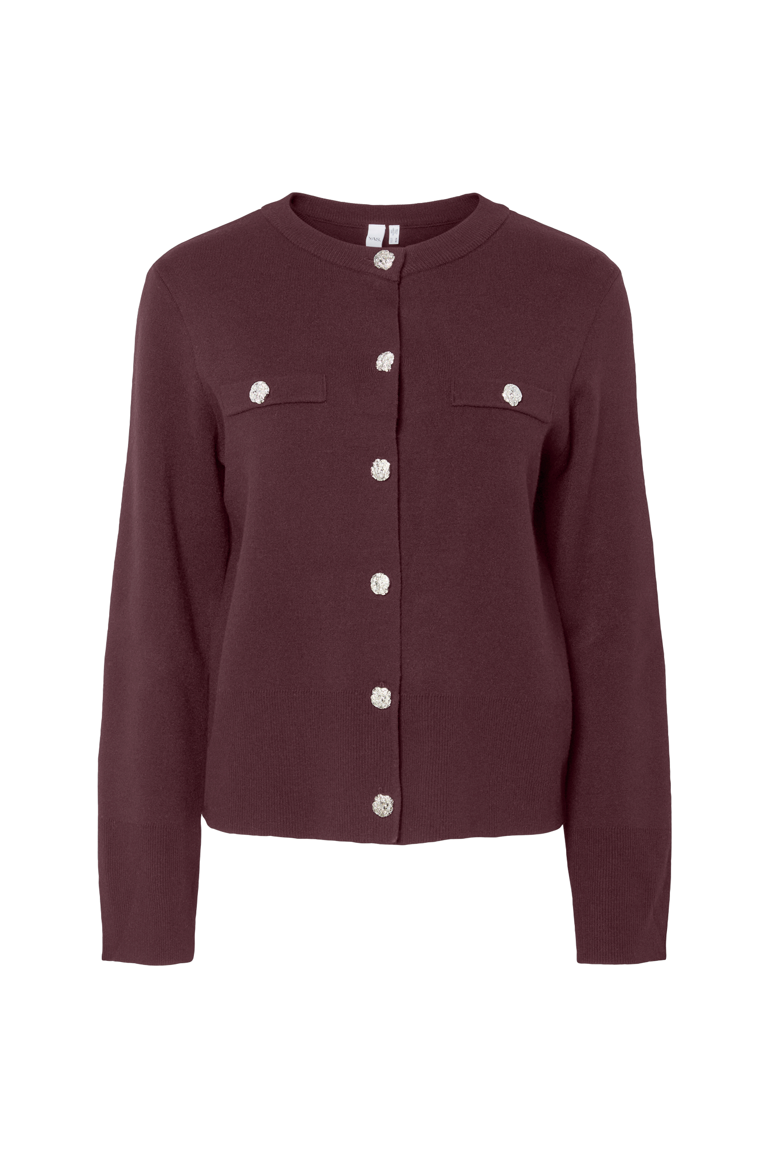 • Model med guldfarvede knapper• Rund hals med ribkant• Bredt, lige ærme med bred ribstrik ved manchetterne• Bred ribstrik ved nederste kant