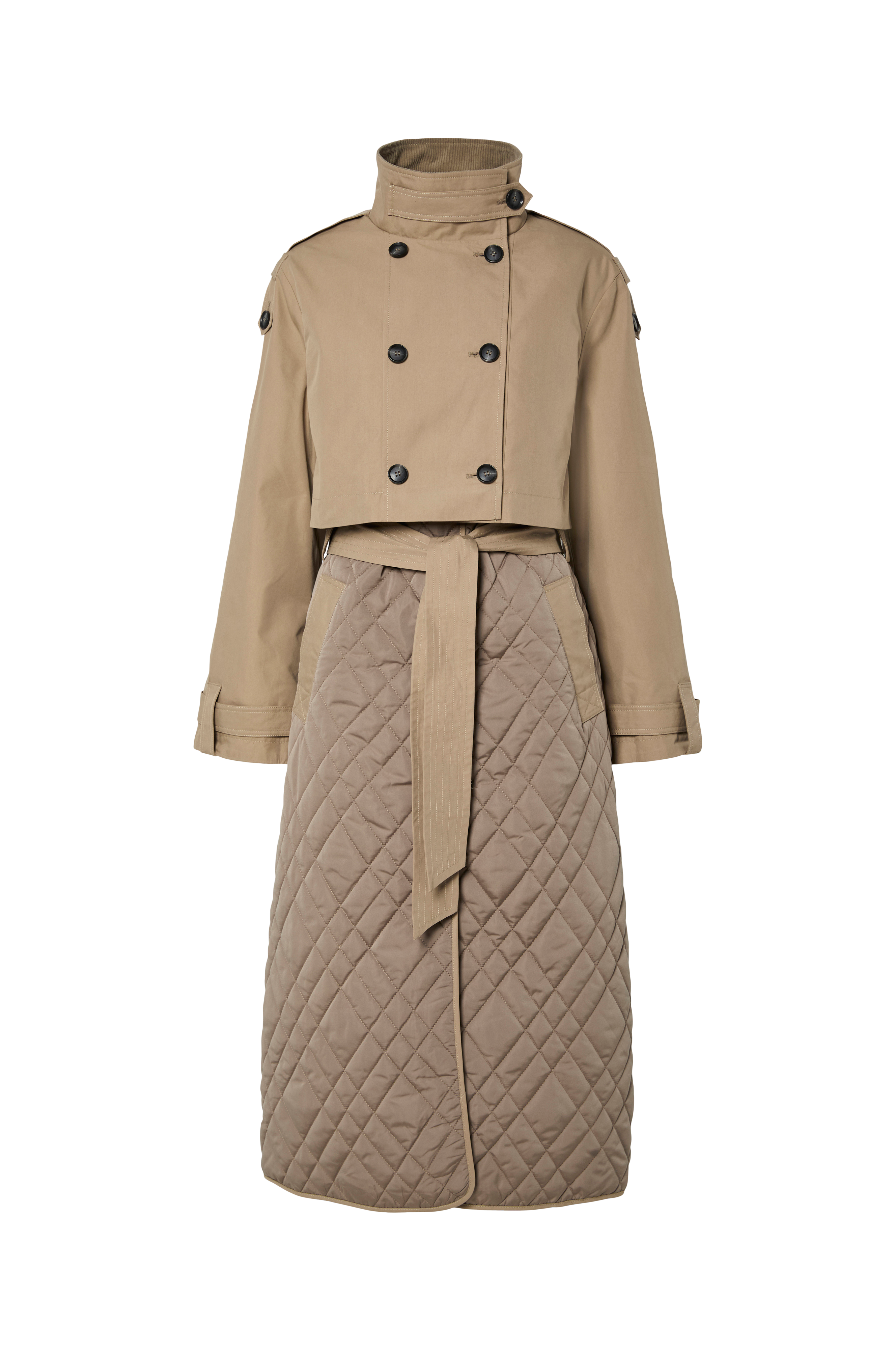 • Kort, aftagelig trenchcoat med opretstående krave