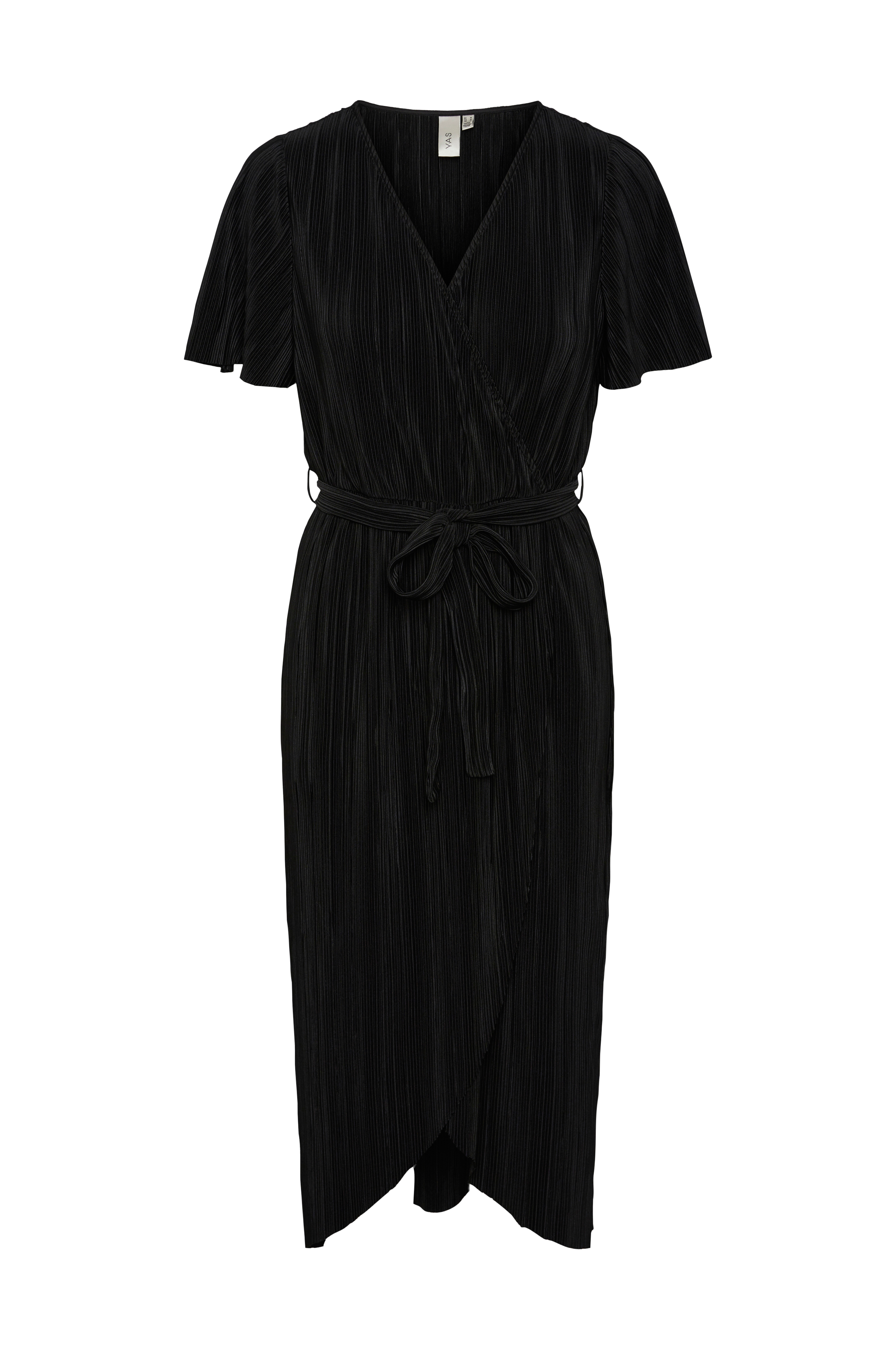 • Plisseret kjole i jersey• V-udskæring med slå-om• Korte ærmer• Elastisk talje med bindebælte• Slå-om design på skørtet• Længde: 127 cm i størrelse S