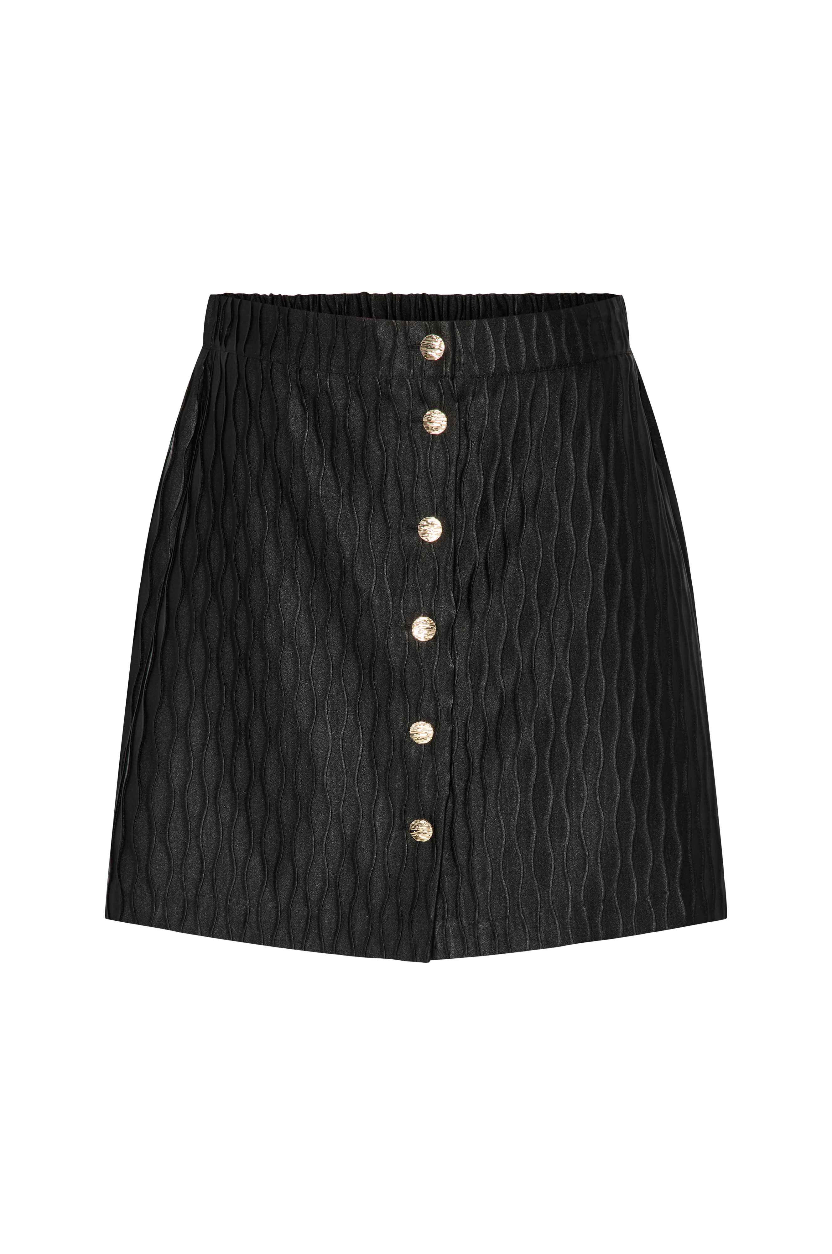 • Fornem, skinnende nederdel med rynket struktur