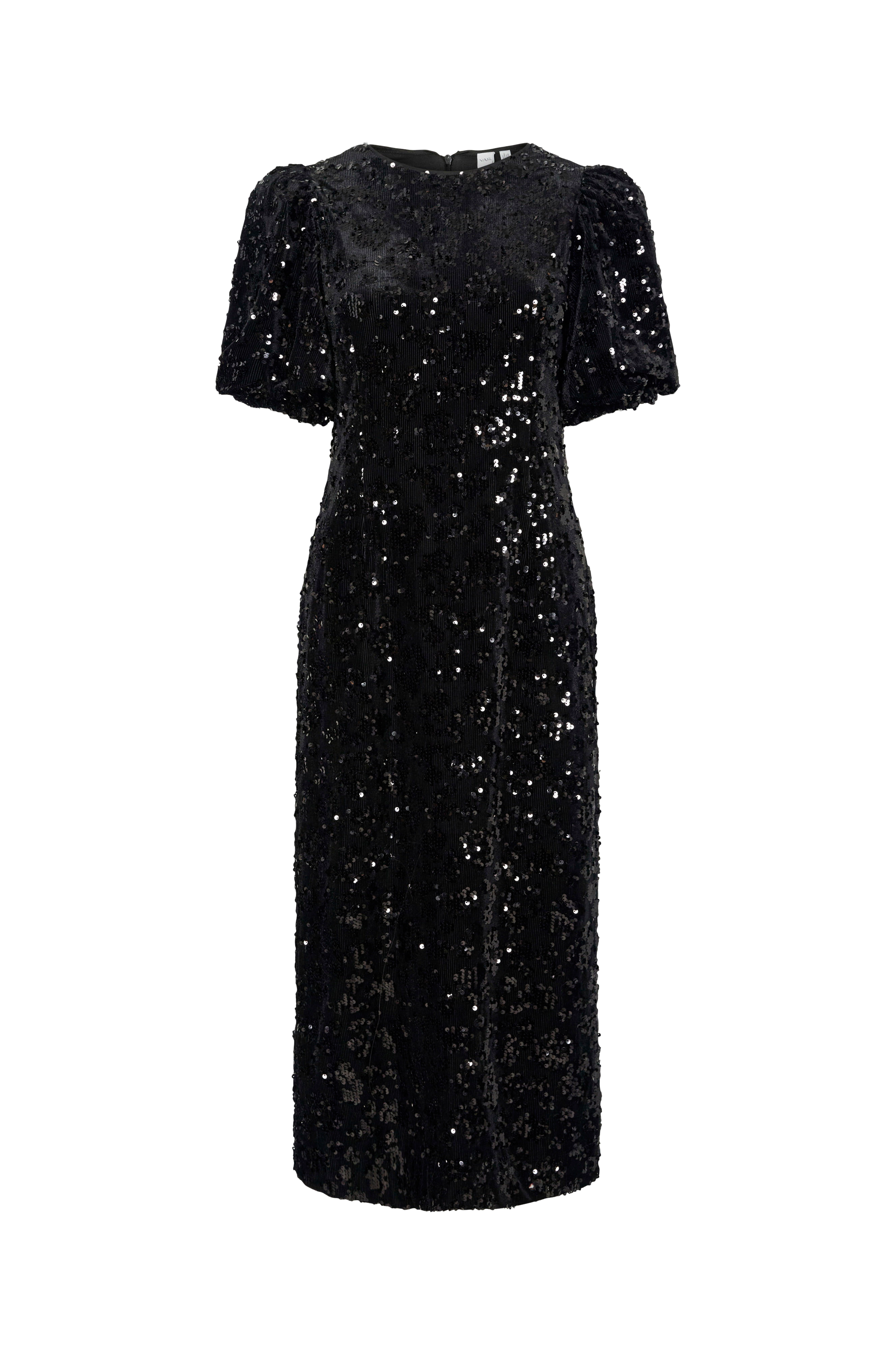 • Kjole med dekorative pailleter• Rund halsudskæring• Skjult lynlås i ryggen• Korte ballonærmer• Tekstilforing• Slids nede bagved• Længde: 121 cm i størrelse S