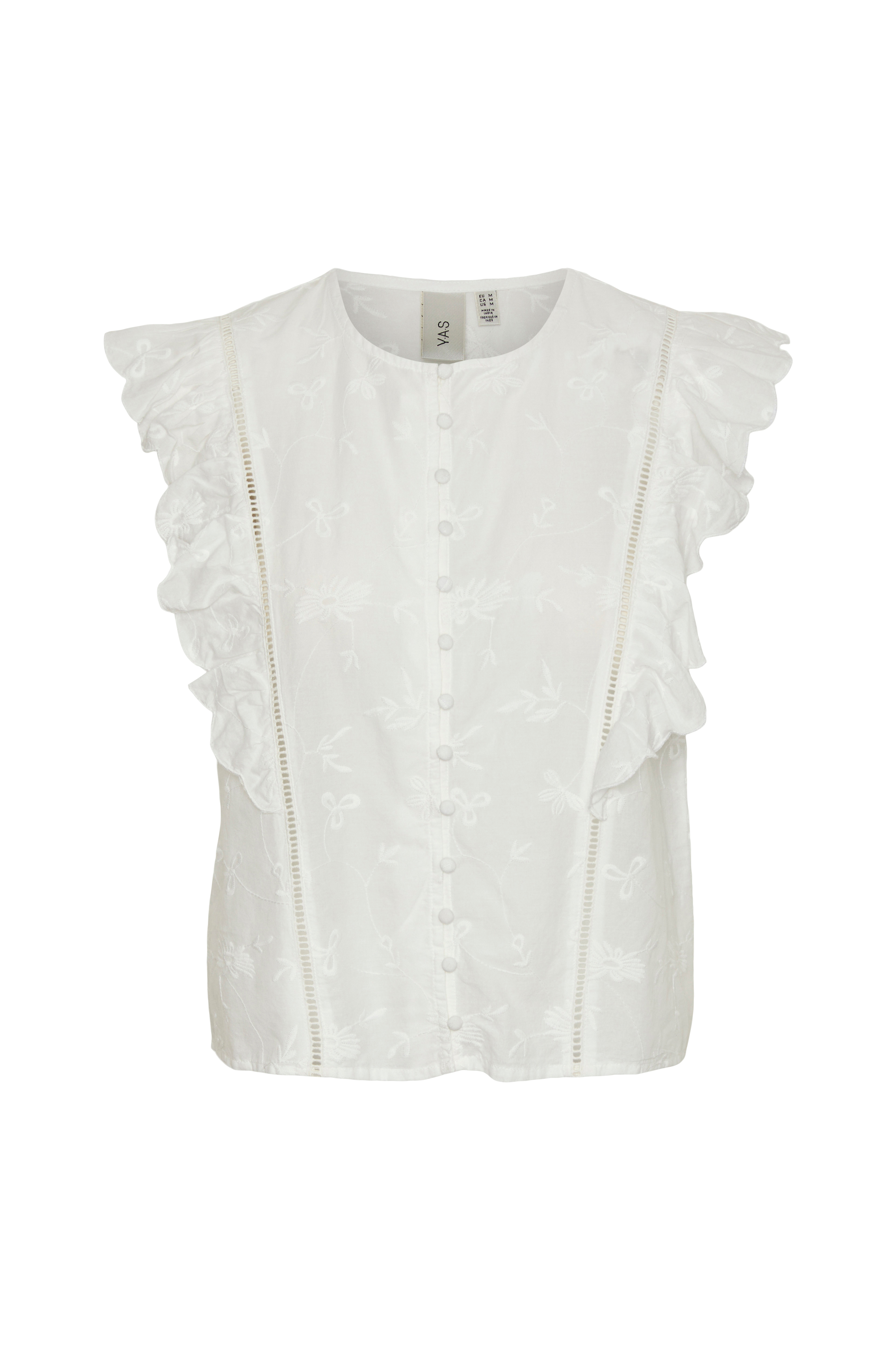 • Lige model med uformel pasform• Broderier overalt• Rund hals• Løkkelukning med beklædte knapper hele vejen frem• Volanter over skuldrene