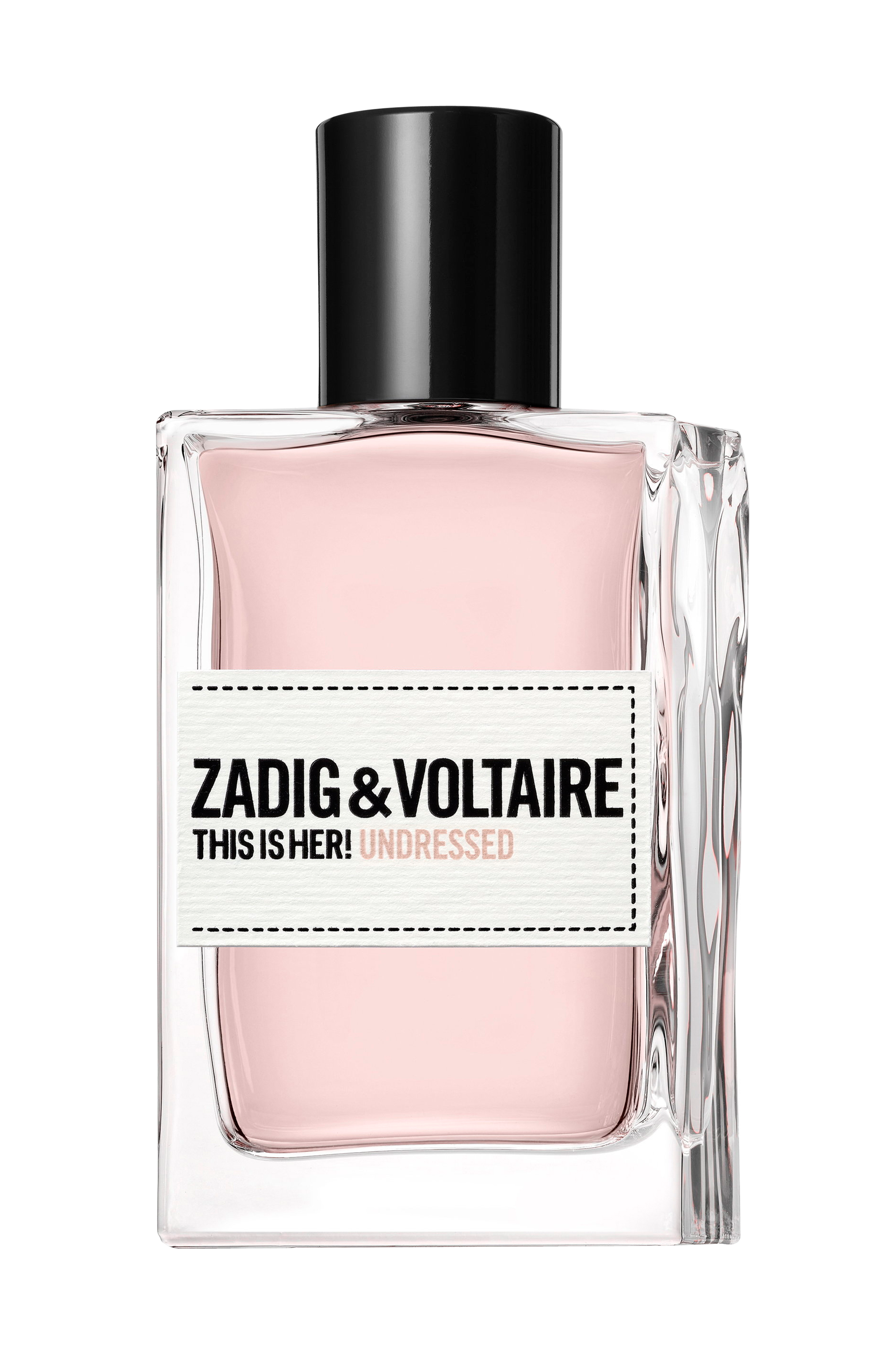 This is Her! Undressed fra Zadig & Voltaire er en delikat og vegansk Eau de parfum. Dens sensuelle og solrige noter af appelsinblomst og ylang-ylang kombineres for at skabe en signaturduft forstærket af noter af sandeltræ. Lette noter af ingefær giver et udbrud af friskhed, der understreges af vanedannende salt. Inspirationen bag duften er intimitet, nærhed og sensuelle minder. Med This is Her! Undressed, Zadig & Voltaire introducerer man en intim, sensuel, personlig og beroligende følelse, der genskaber forbindelsen til dig selv, samtidigt med at du tør lade andre komme tæt på.