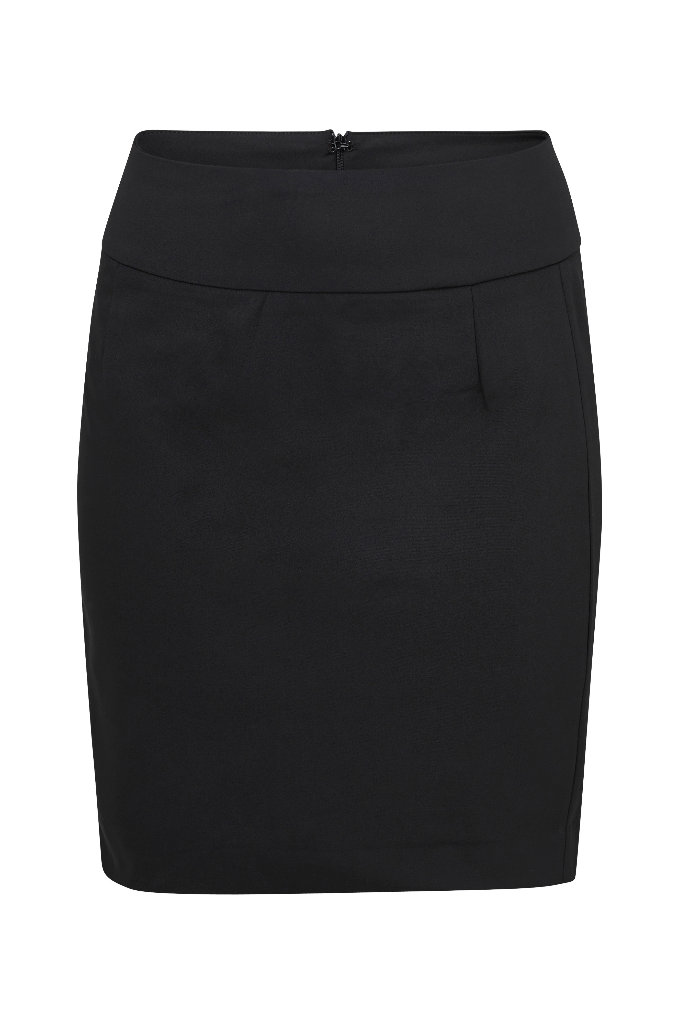Nederdel yMaria Knee Lenght Skirt fra Zay. Lige model i vævet stretchkvalitet med bred, påsyet kant foroven som har skjult lynlås bagpå. Lille slids bagpå i kanten forneden. Længde ca. 58 cm i str. S.