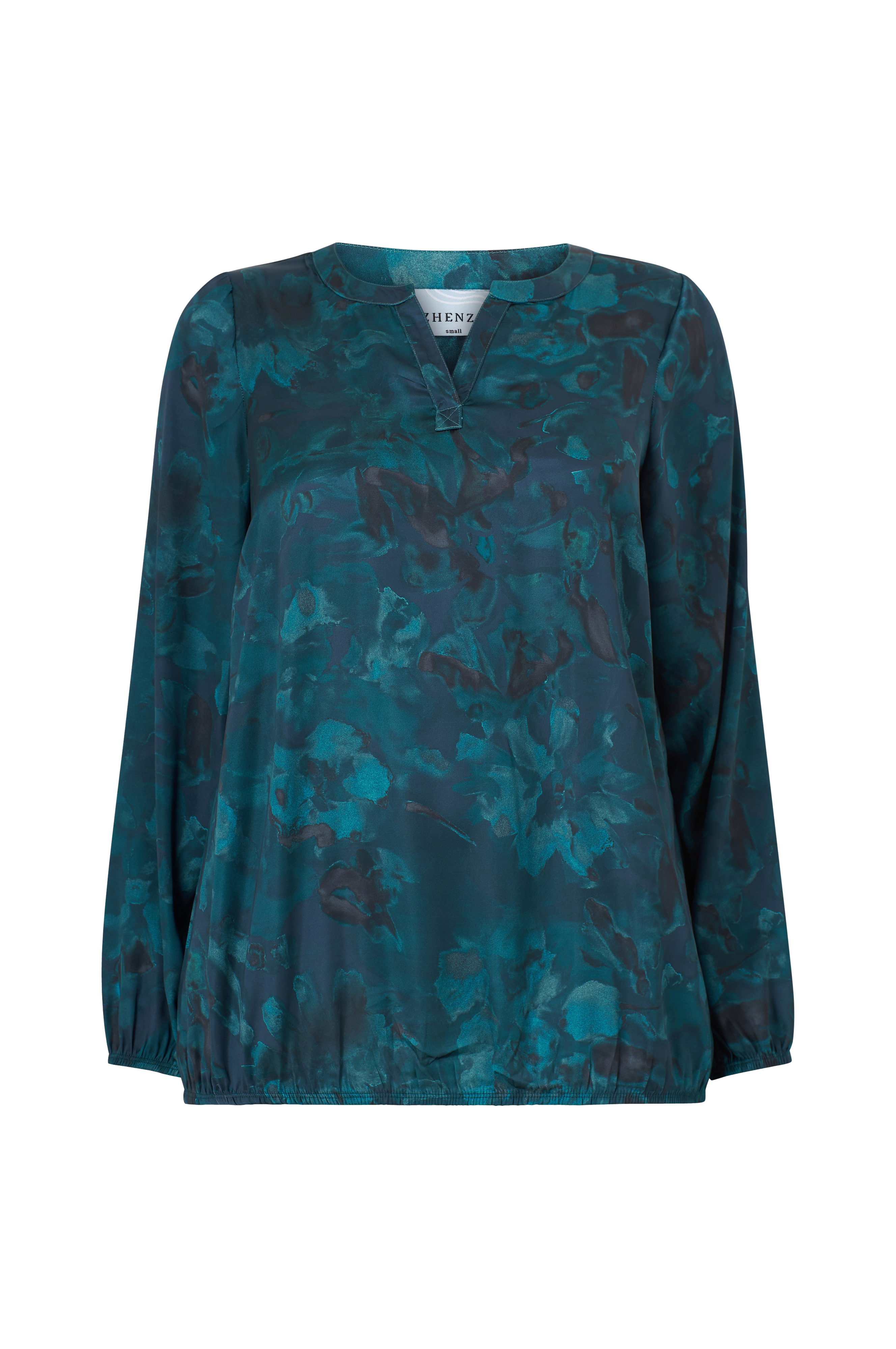 • Store størrelser• Bred model i satin med elastik nederst• Rund hals med ventilation foran• Langt, bredt ærme med elastik ved manchetterne