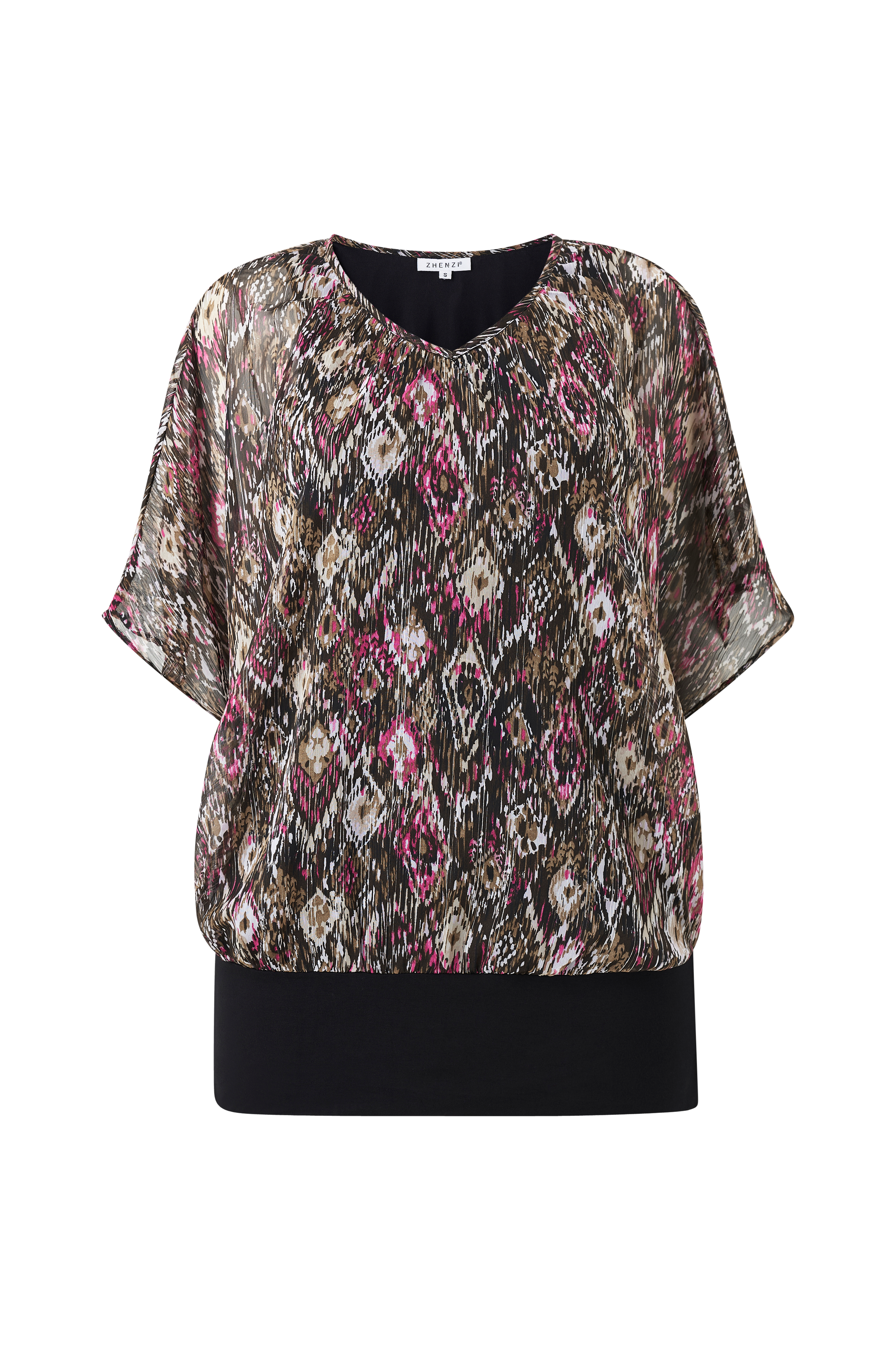 • Bluse i mønstret chiffon med bred ribmanchet nederst• V-udskæring med samling• Sommerfugleærmer• Trikotfor• Store størrelser