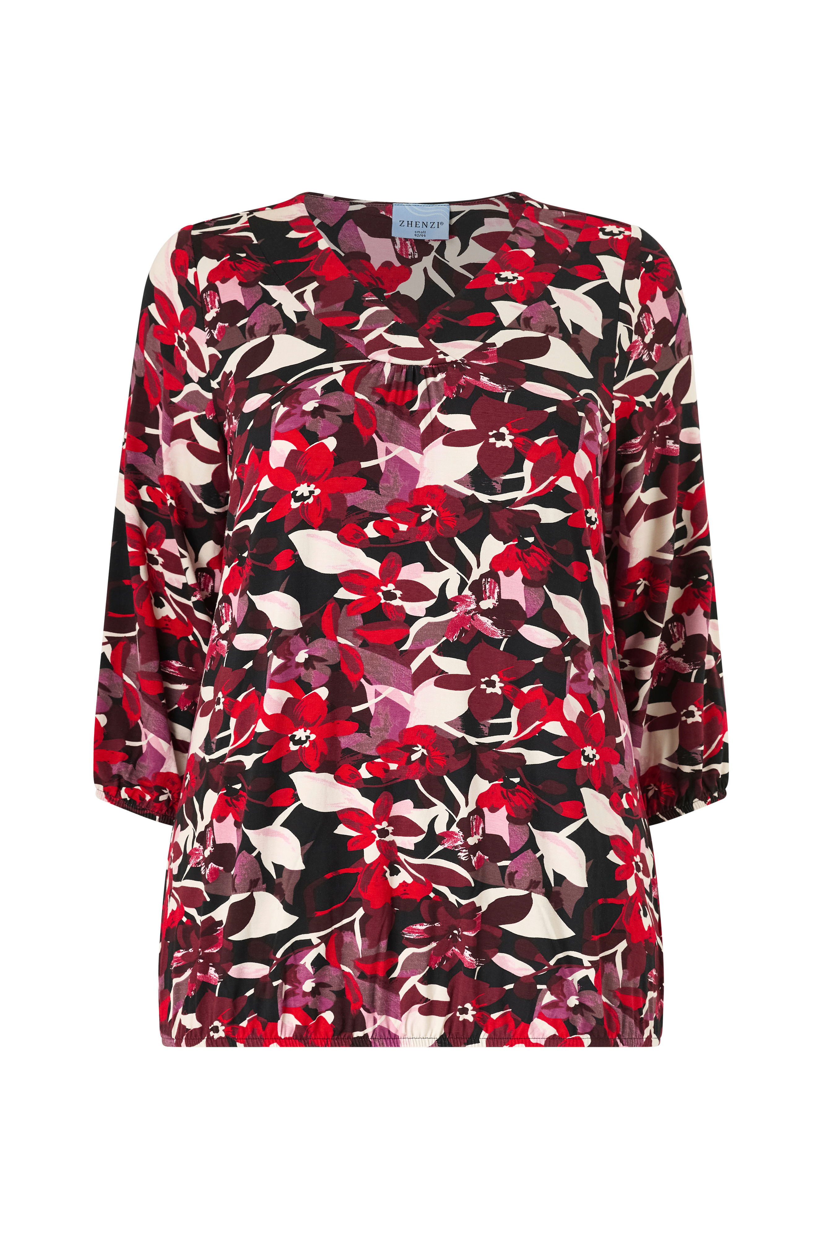 • Blød, elastisk bluse i viskose• V-formet halsudskæring med lægdetalje oppe foran• Elastik ved manchetterne og ved nederste kant• Plusstørrelser