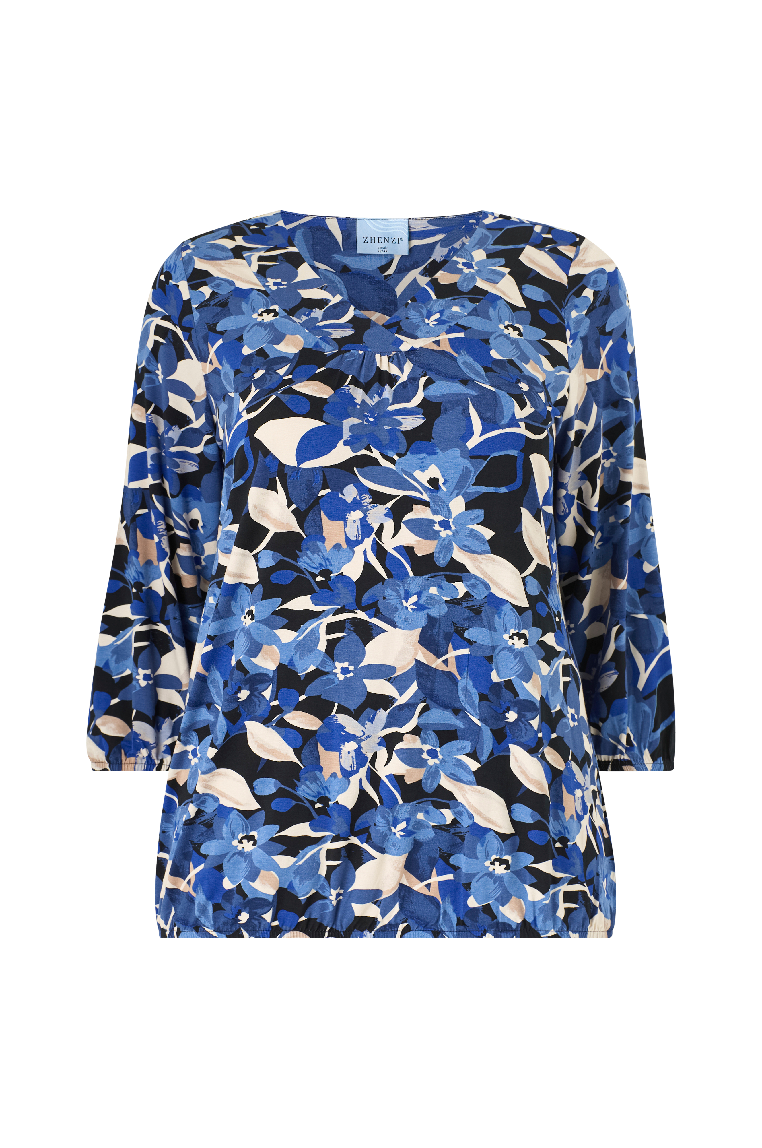• Blød, elastisk bluse i viskose• V-formet halsudskæring med lægdetalje oppe foran• Elastik ved manchetterne og ved nederste kant• Plusstørrelser