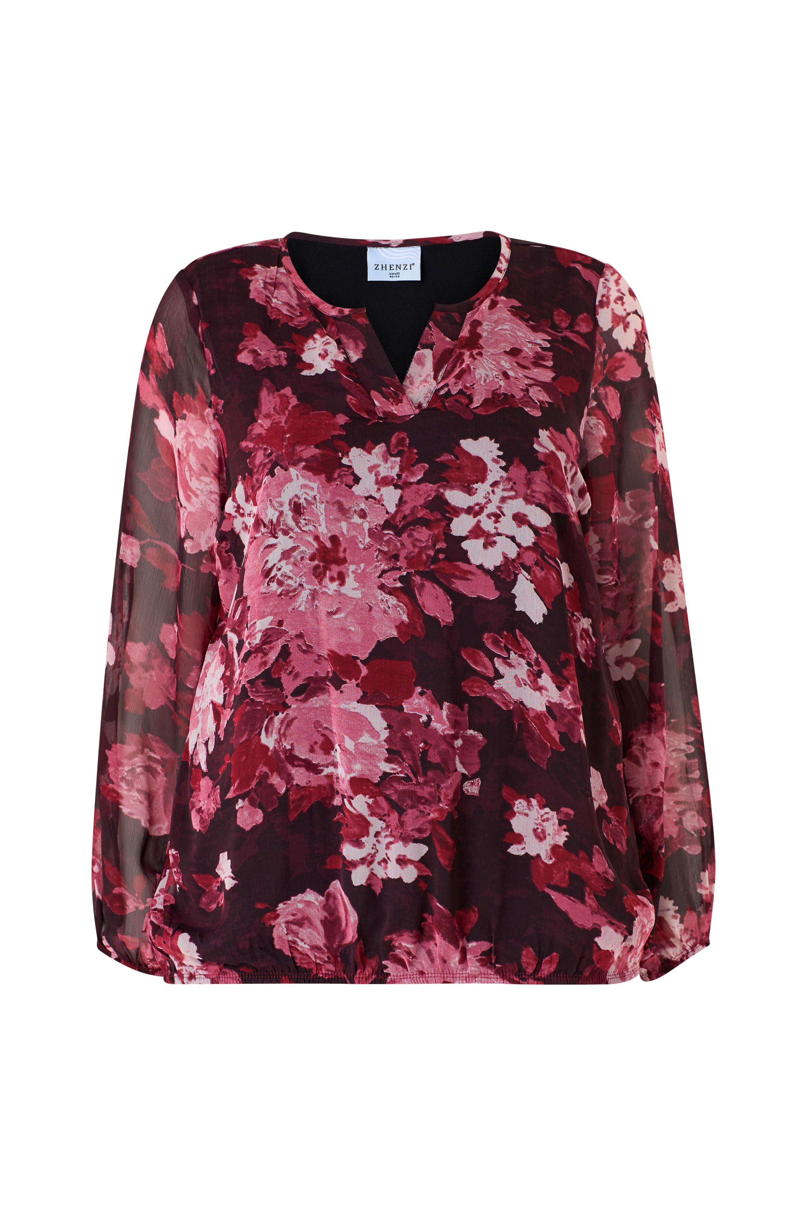 • Mønstret bluse i chiffon• V-udskæring• Lange, transparente ballonærmer• Tekstilforing• Elastik ved manchetterne og ved nederste kant• Plusstørrelser
