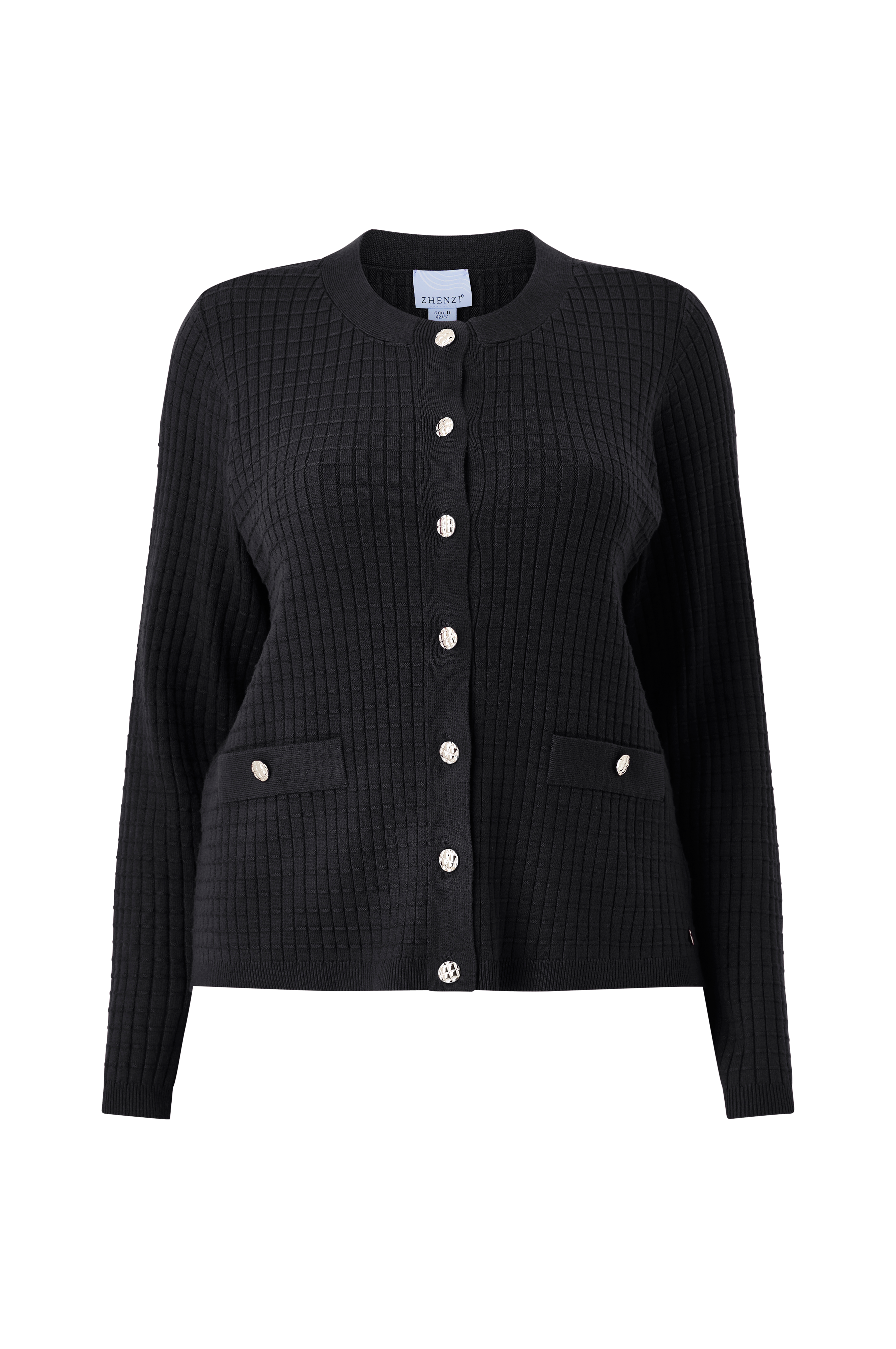 • Langærmet, mønsterstrikket cardigan i viskoseblanding• Rund, ribbet halsudskæring• Dekorative knapper foran• Snydelommer foran• Ribstrik ved manchetterne og ved nederste kant• Plusstørrelser