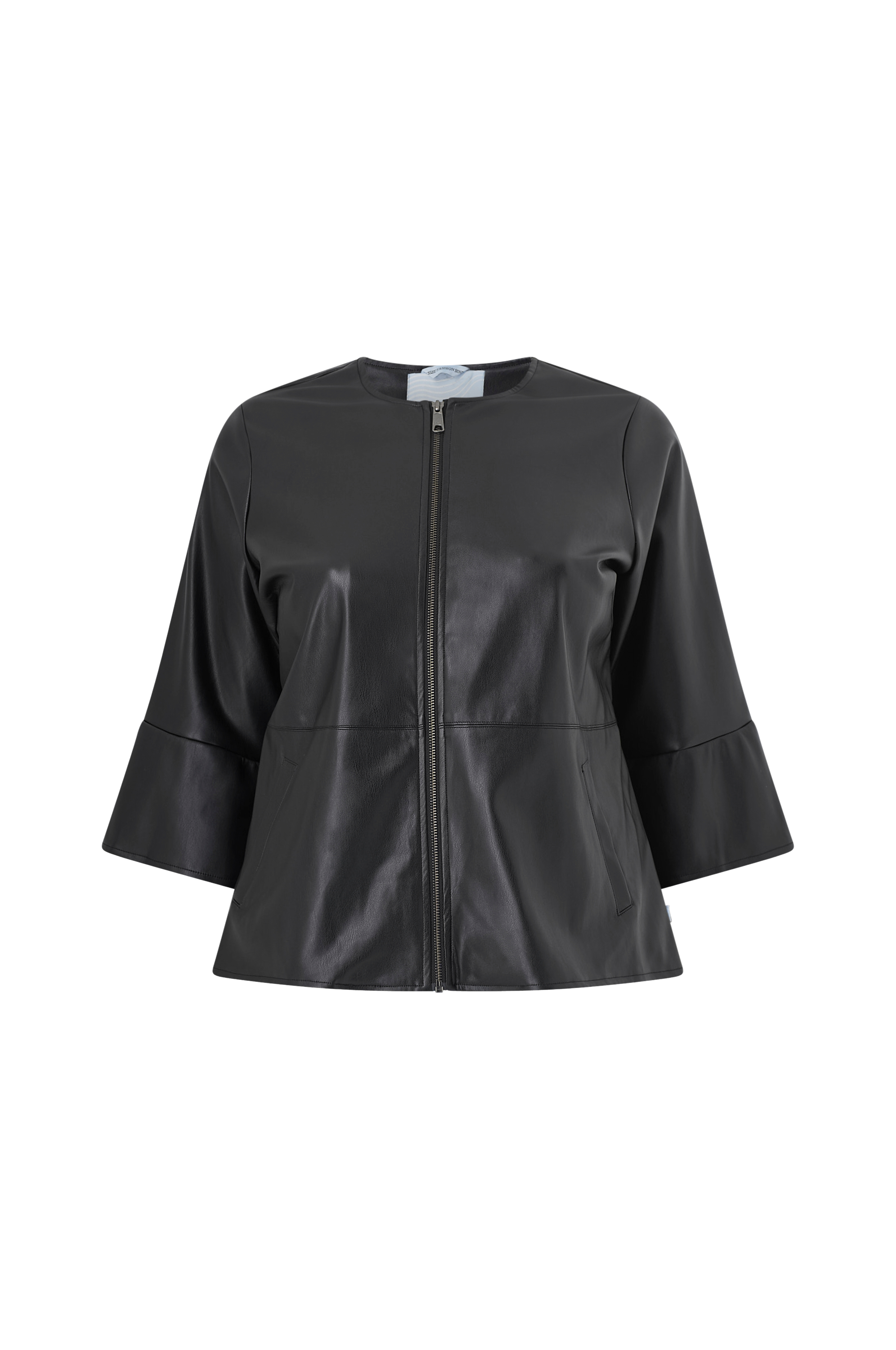 • Store størrelser• Lige, uformel model i imiteret læder• Rund hals• Lynlås foran• Indlagte lommer• Bredt, 3/4 langt ærme med svaj• Længde: 66 cm i størrelse S
