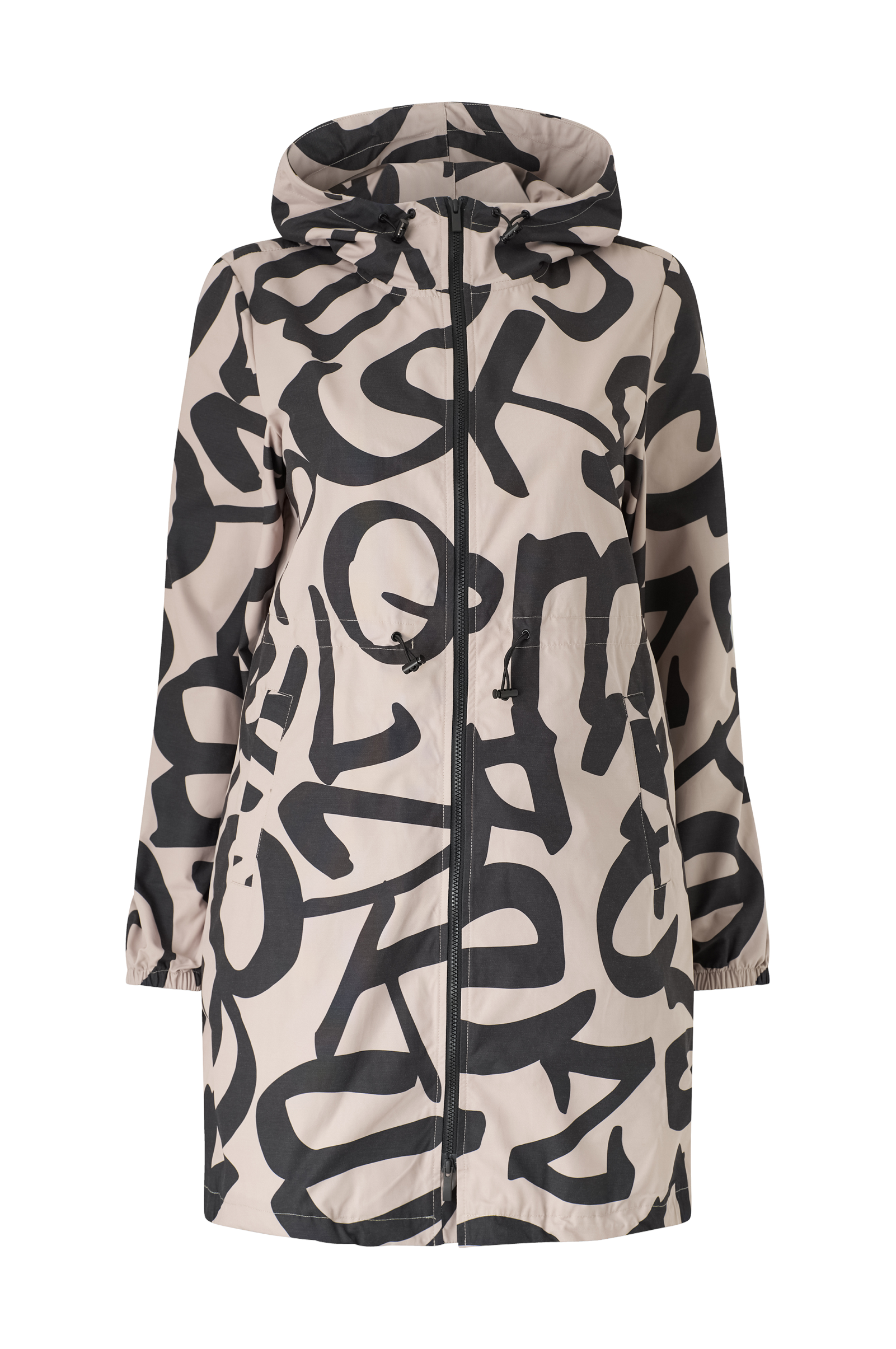 • Vind- og vandtæt jakke• Høj krave• Fast, justérbar hætte• Elastik ved manchetterne• To-vejs lynlås• Træksnørre ved taljen• Sidelommer• Plusstørrelser• Længde: 93 cm i størrelse S
