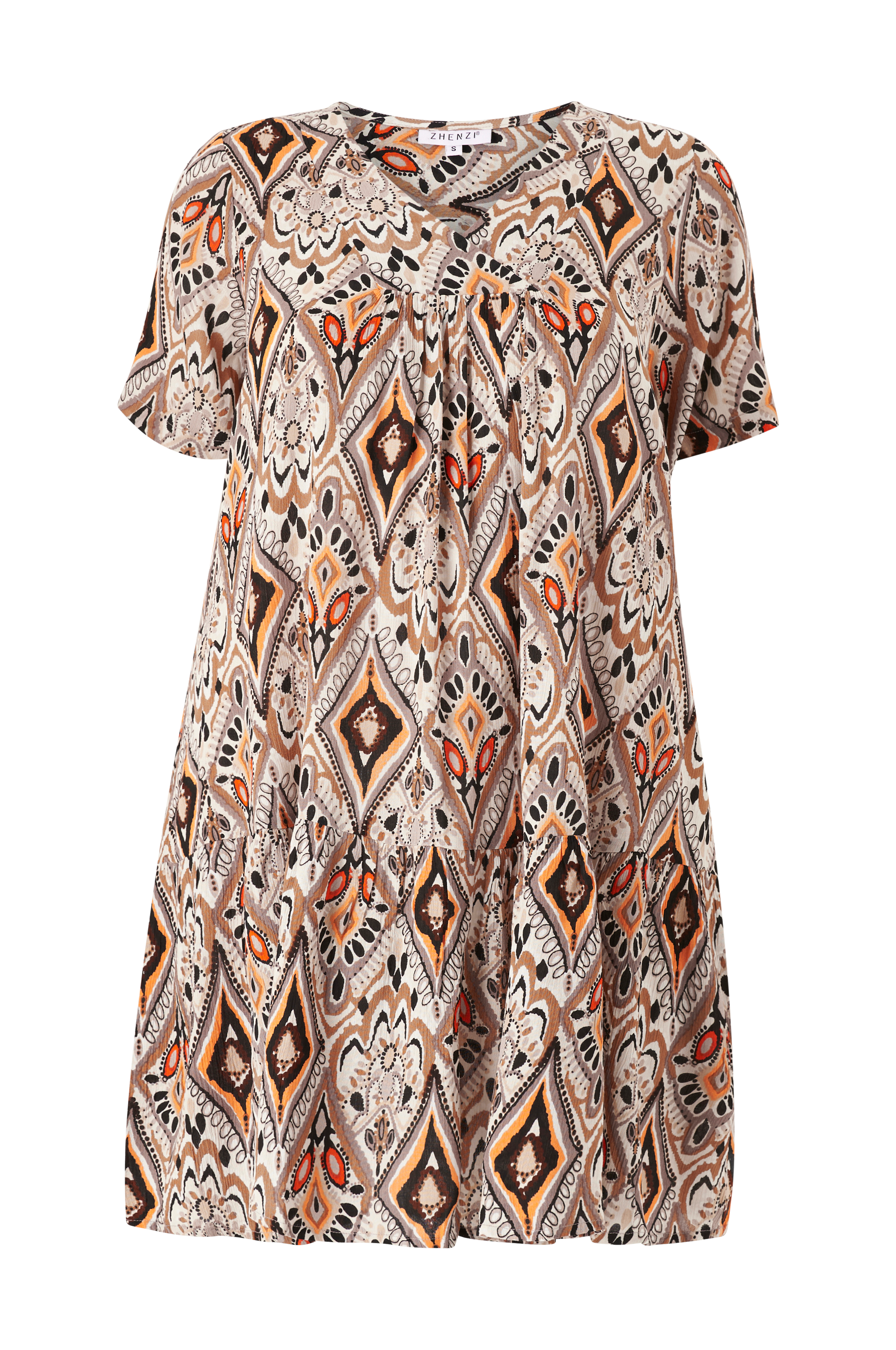 • Kort kjole• A-linje design• Korte ærmer• V-udskæring med slå-om detalje• Volant nederst• Store størrelser• Længde: 94 cm i størrelse S
