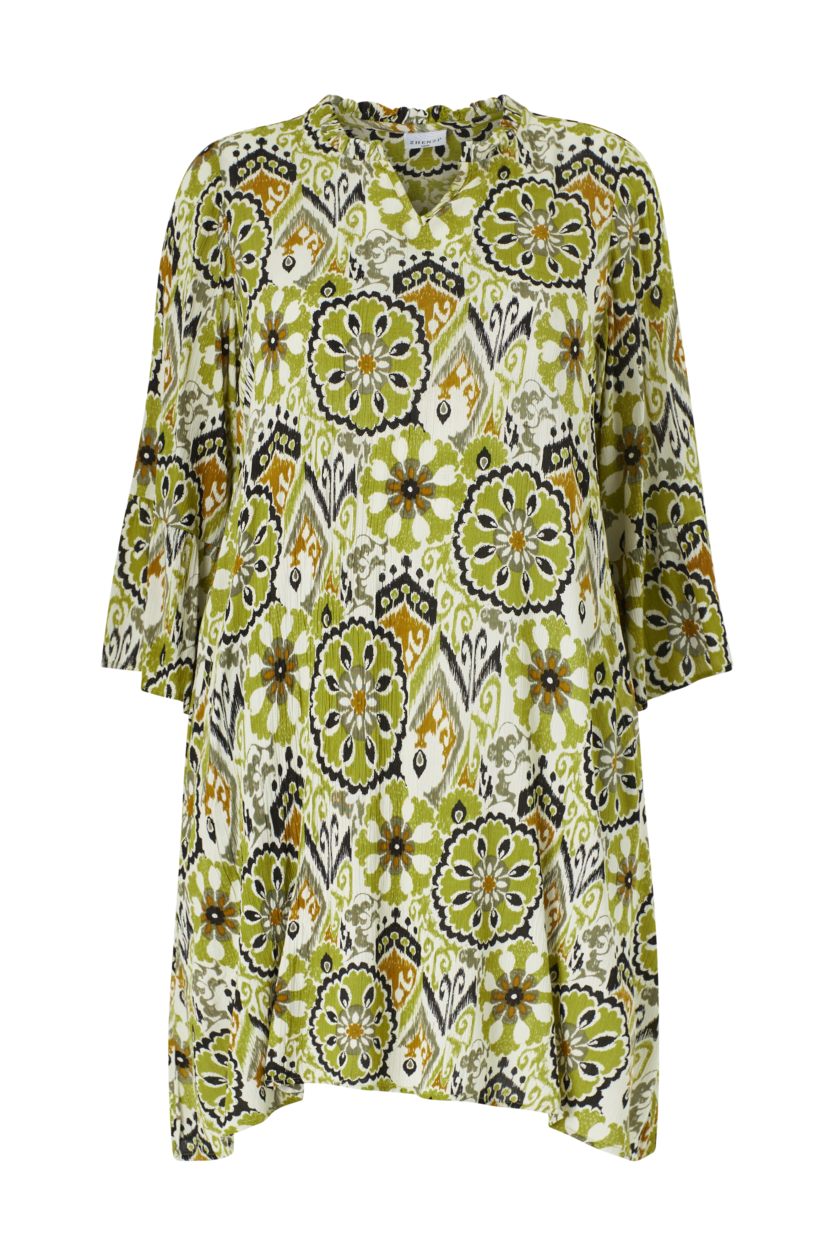 • Store størrelser• Model med svaj i crepe• Rund hals med flæsekant og ventilation foran• Bredt ærme med svaj• Indlagte lommer• Længde: 102 cm i størrelse S