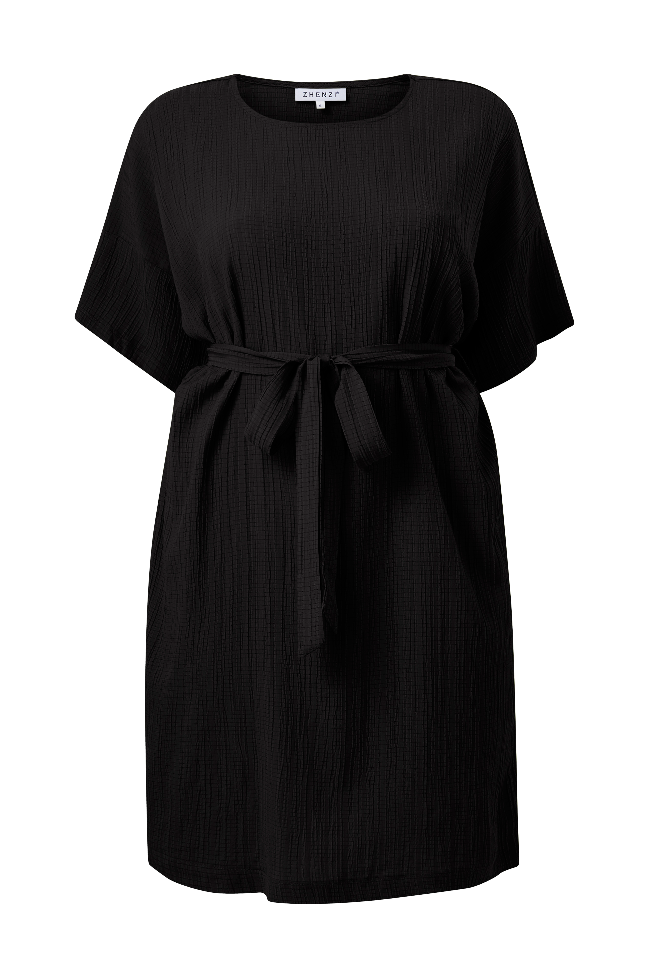 • Let indsnævrende pasform• Korte kimonoærmer• Bindebælte ved taljen• Rynket kvalitet• Store størrelser• Længde: 100 cm i størrelse S