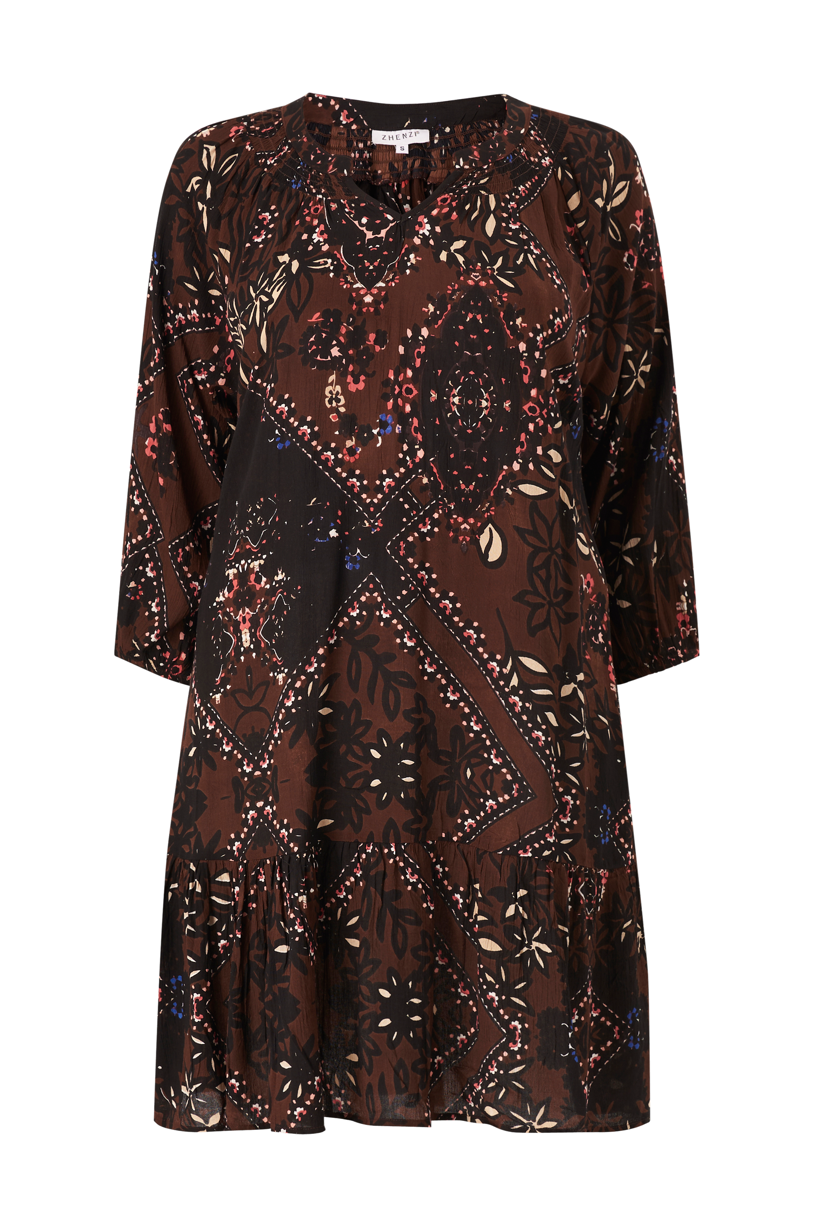• Store størrelser• Model med svaj• Halsudskæring med smock hele vejen rundt og ventilation foran• Bredt raglanærme med elastisk manchet• Bred volant nederst• Længde: 103 cm i størrelse S