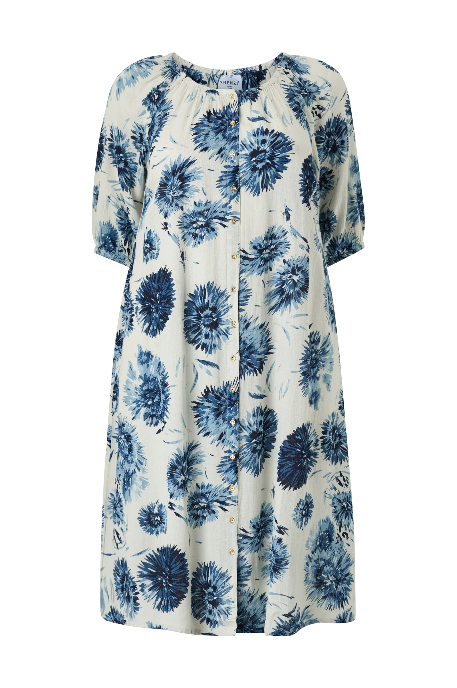 • Mønstret kjole i hørblanding• Bred, elastisk halsudskæring• Guldfarvede knapper foran• Halvlange ærmer• Længde: 112 cm i størrelse S• Plusstørrelser