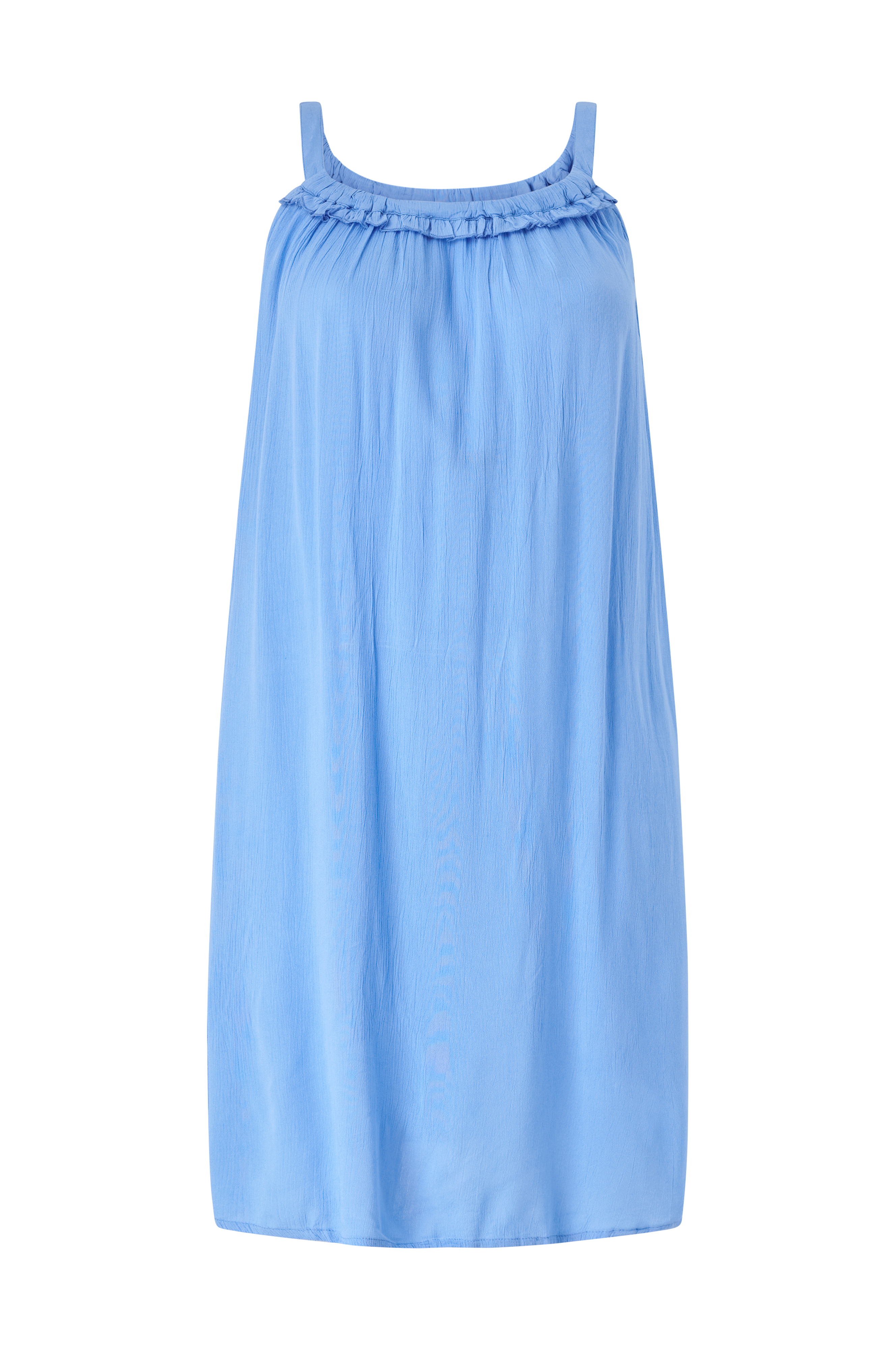 • Ærmeløs kjole i luftig viskose med løs pasform• Rund halsudskæring med lille volant hele vejen rundt• Store størrelser• Længde: 107 cm i størrelse S