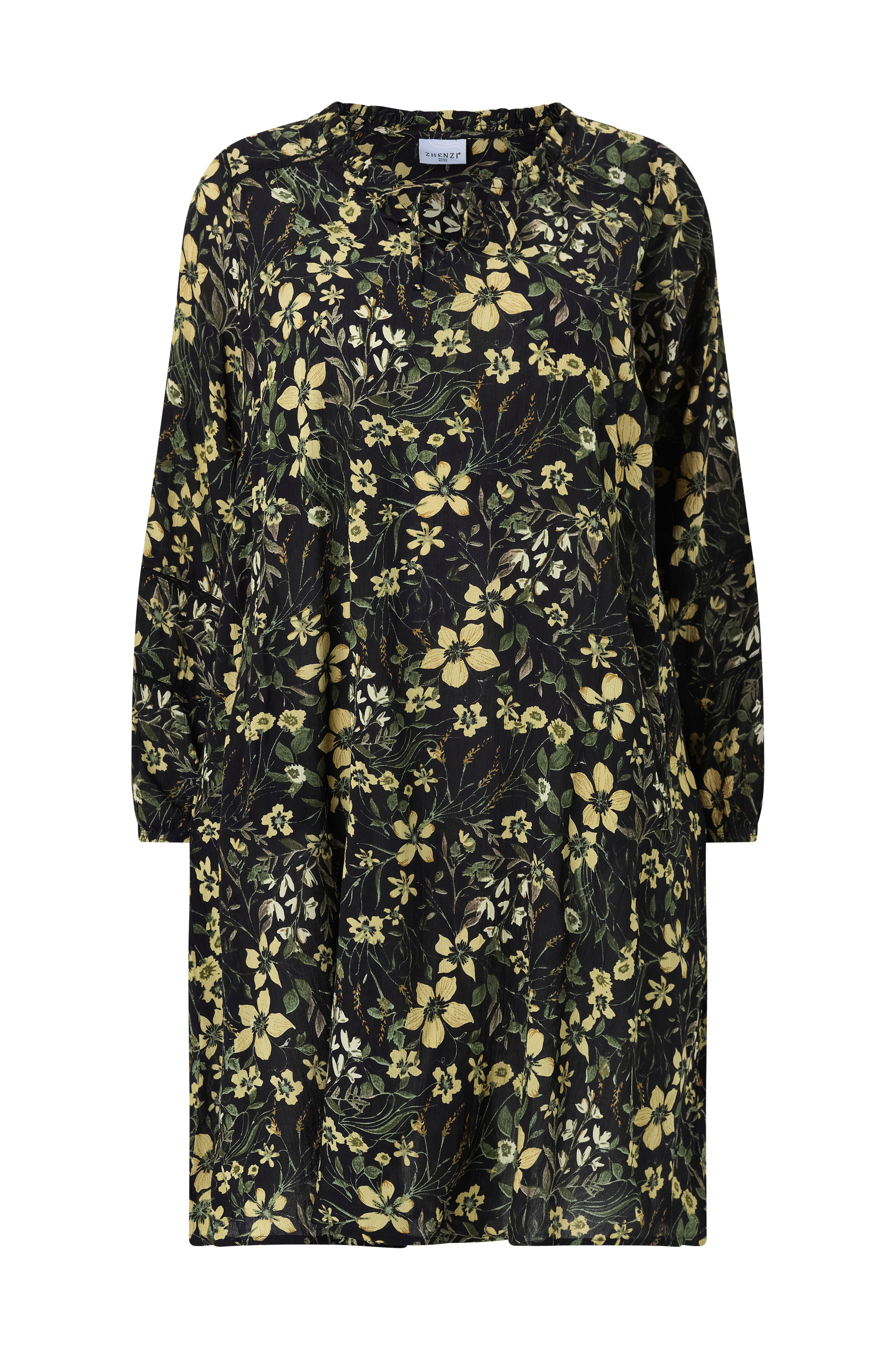 • Kjole i viskose med et blomstermønster• V-udskæring med flæsekant hele vejen rundt• Dekorativ snørelukning• Lange ærmer• Elastik ved manchetterne• Sidelommer• Hulmønstrede detaljer• Plusstørrelser• Længde: 108 cm i størrelse S