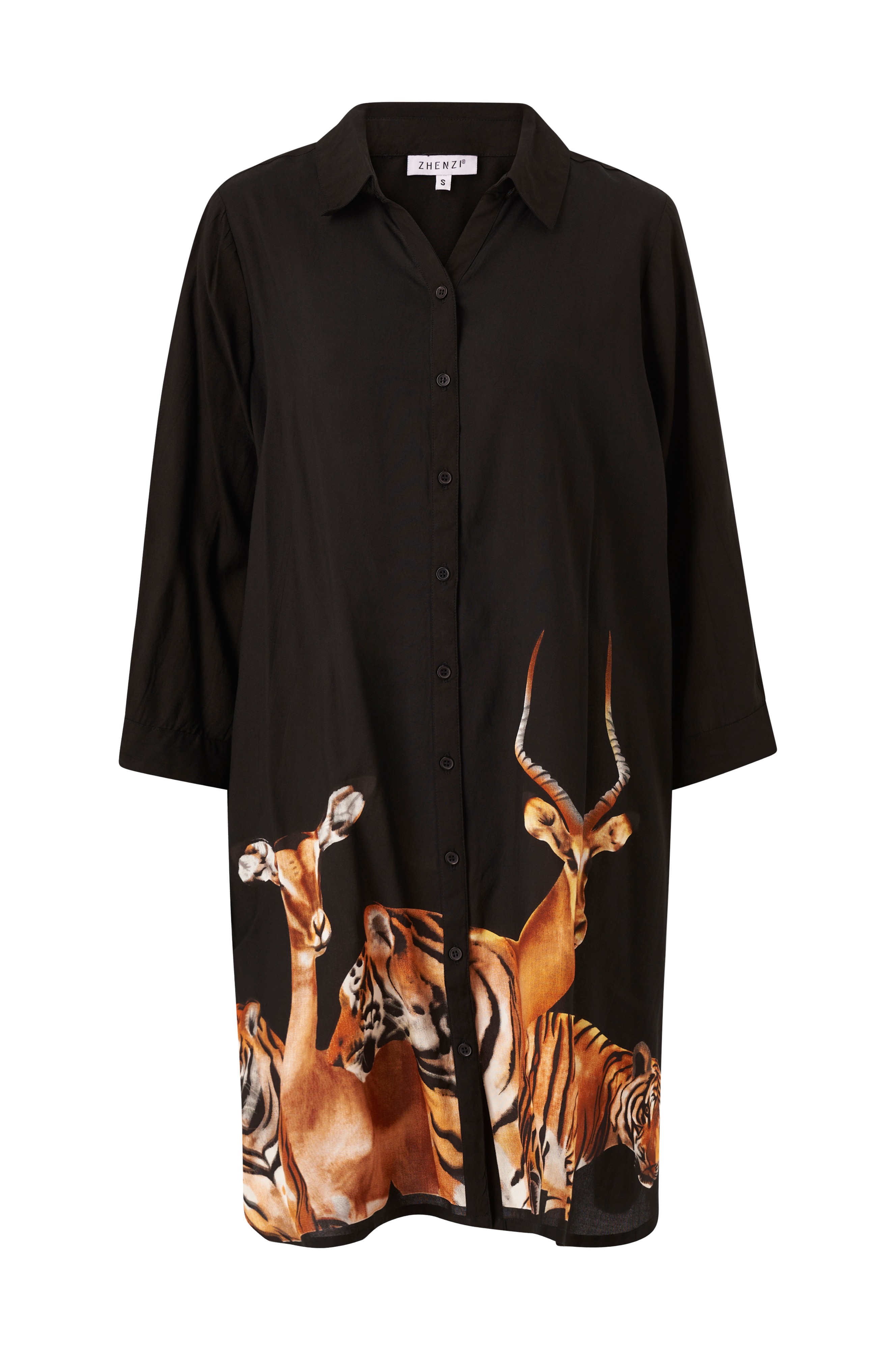 • A-linje design• Knapper foran• Lange ærmer med knap til oprulning• Lommer i siderne• Tryk nede foran