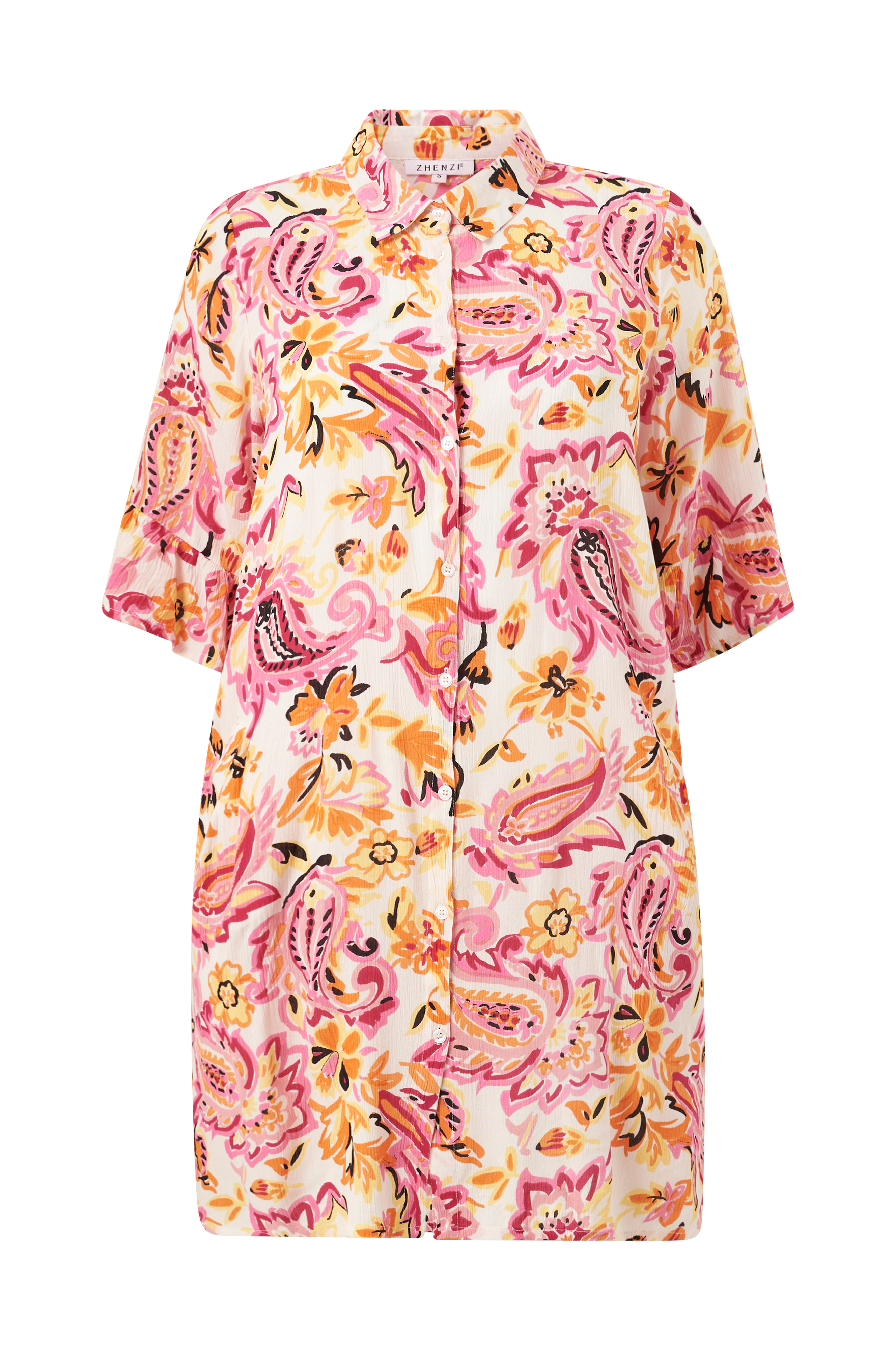 • Knapper foran• 3/4 lange ærmer med volant• Lommer i siderne• Løs pasform• Rynket kvalitet• Store størrelser