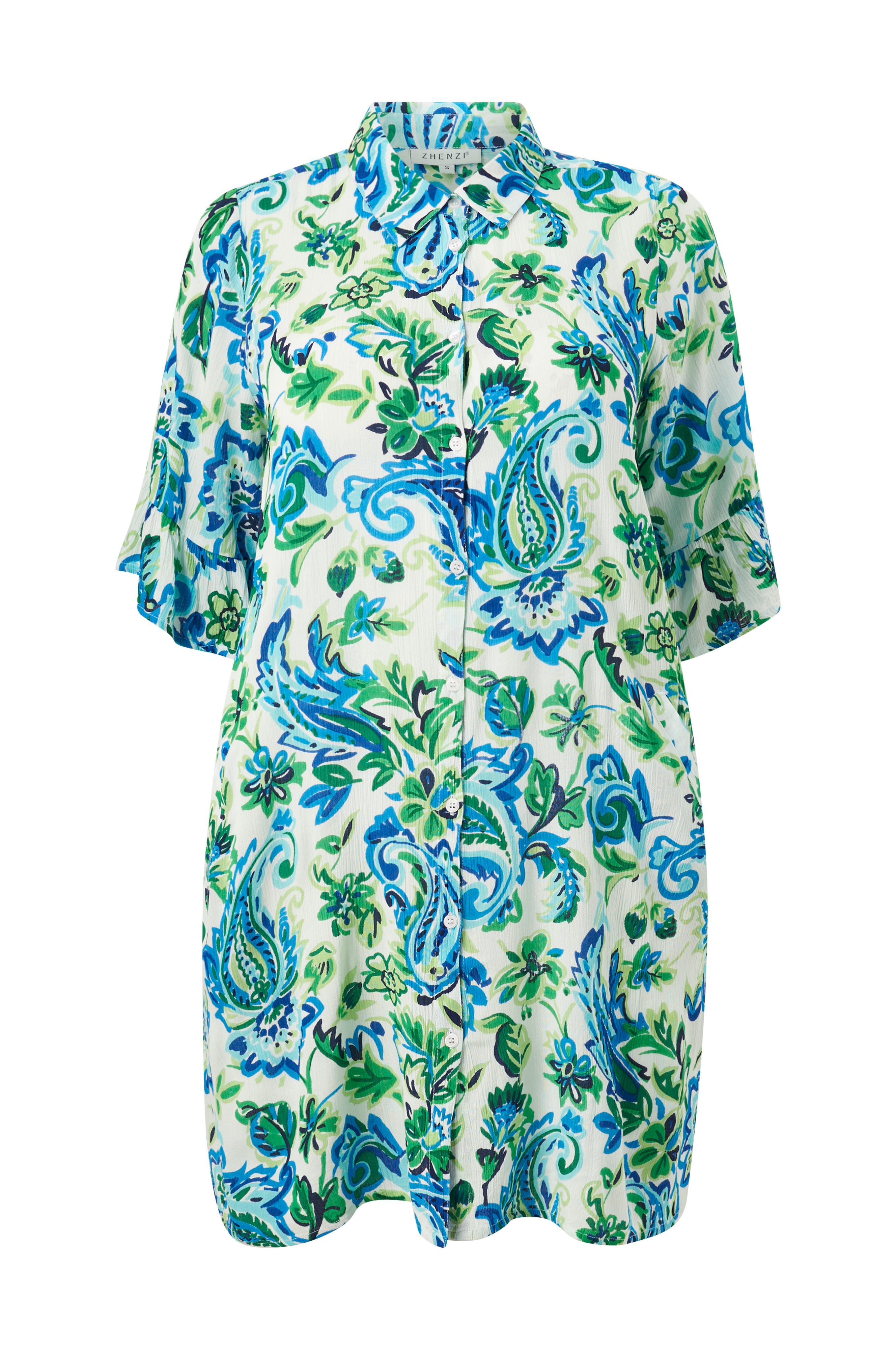 • Knapper foran• 3/4 lange ærmer med volant• Lommer i siderne• Løs pasform• Rynket kvalitet• Store størrelser
