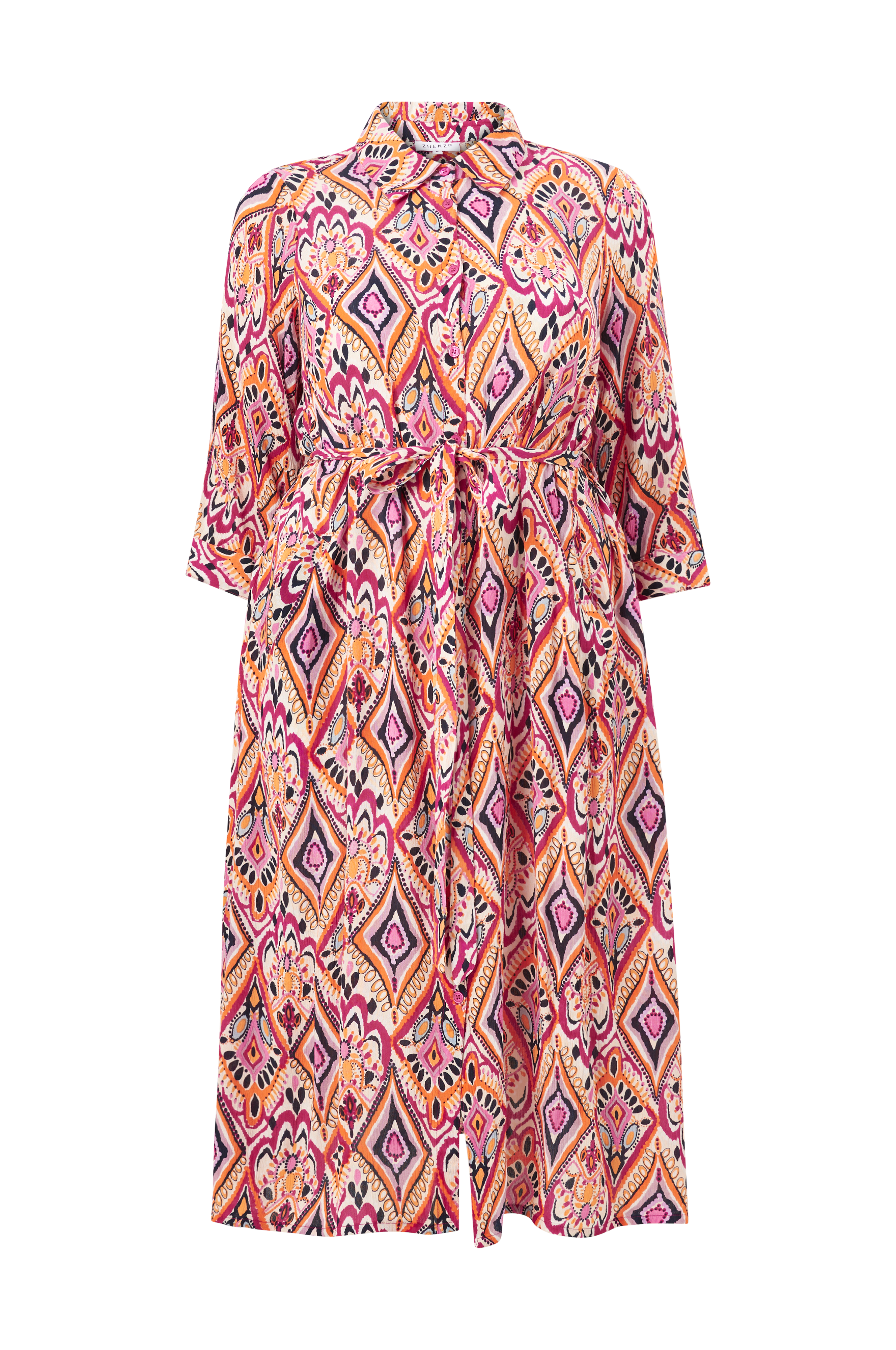 • Lang skjortekjole i rynket viskose• Knapper foran• Lidt kortere ærmer• Bindebælte ved taljen• Lommer i siderne• Længde: 130 cm i størrelse S