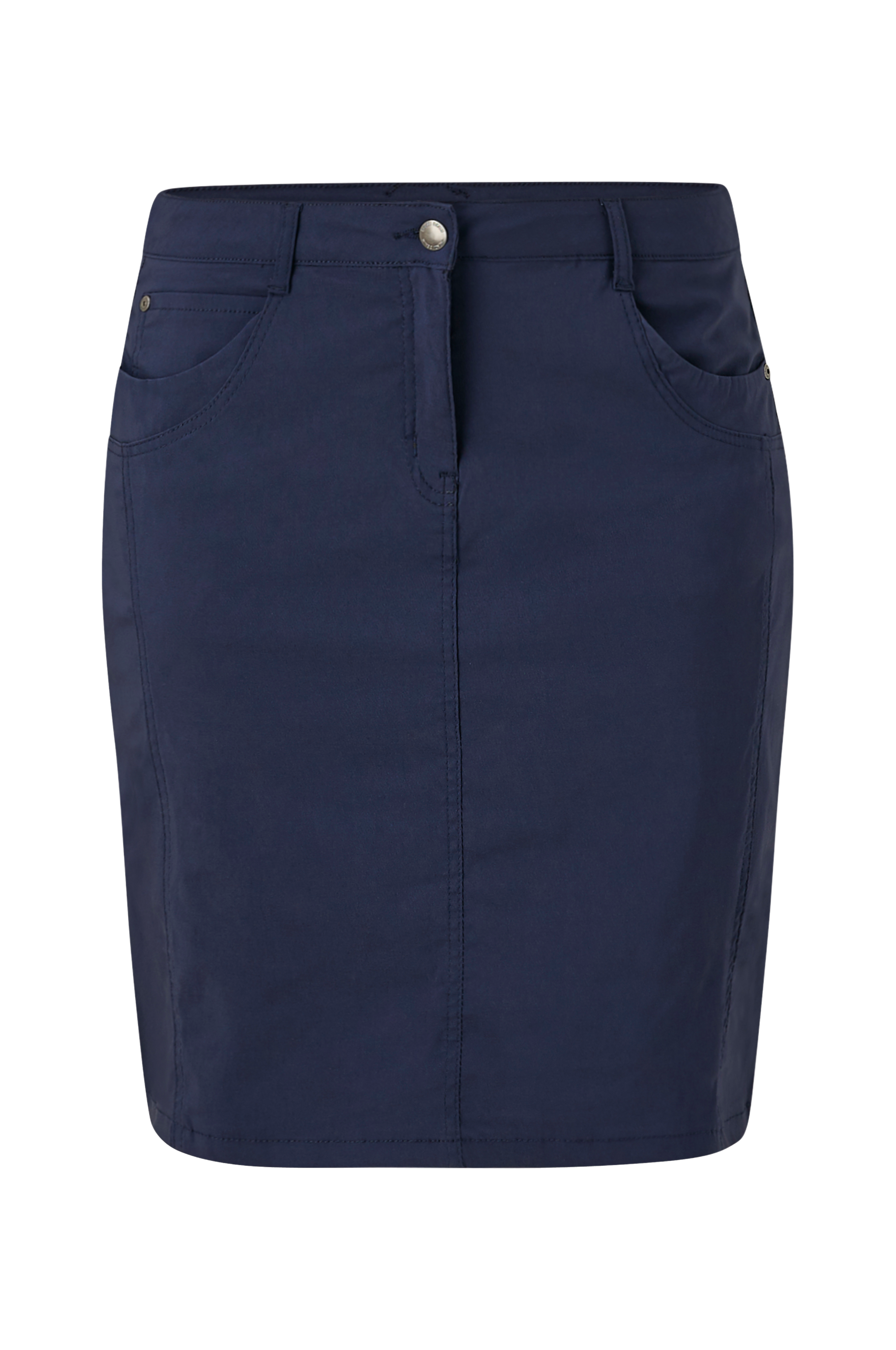 Nederdel Bengalin fra Zhenzi i vævet kvalitet med meget stretch. Inderbuks i stretchjersey. Linning med stropper og knap samt gylp med lynlås. Tre lommer foran og to baglommer. Længde ca. 58 cm i str. 44.