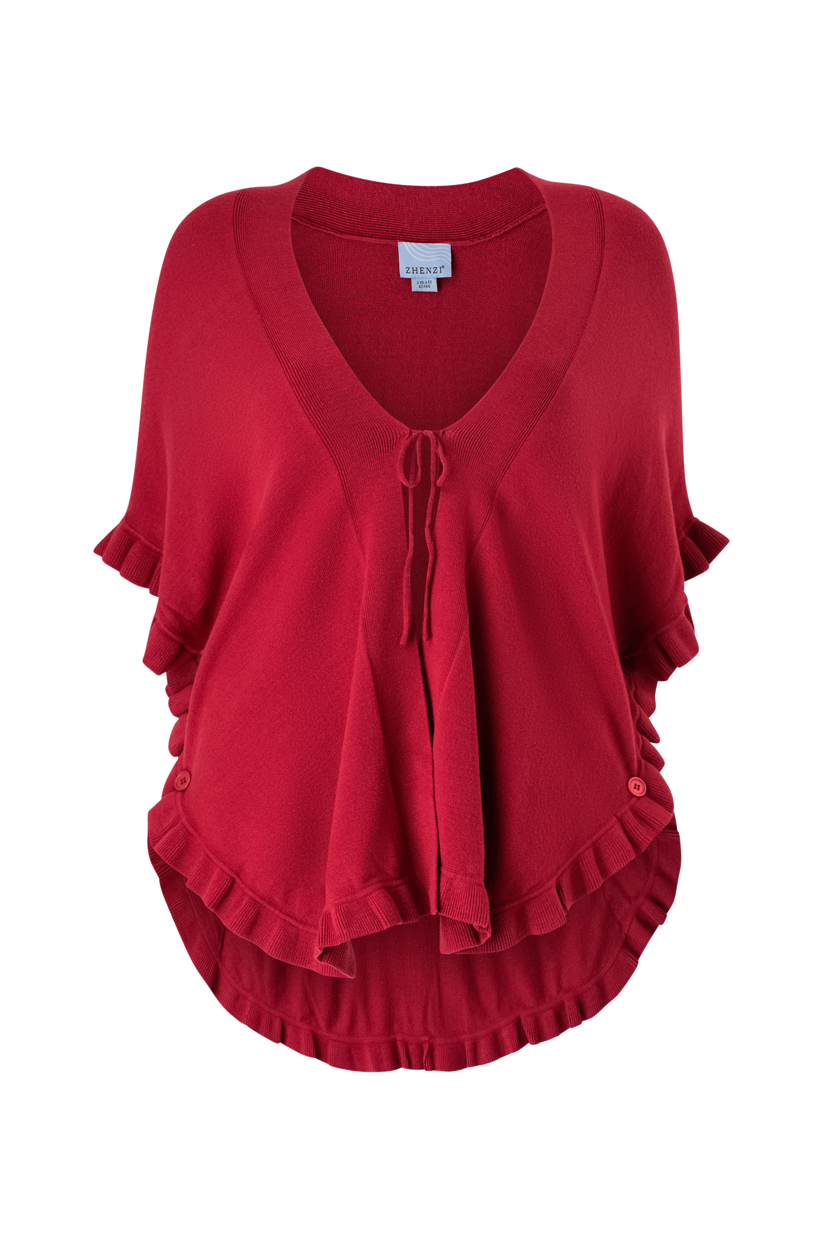 • Blød, fintstrikket poncho med bindebånd foran• Volant langs kanterne med knaplukning• Plusstørrelser