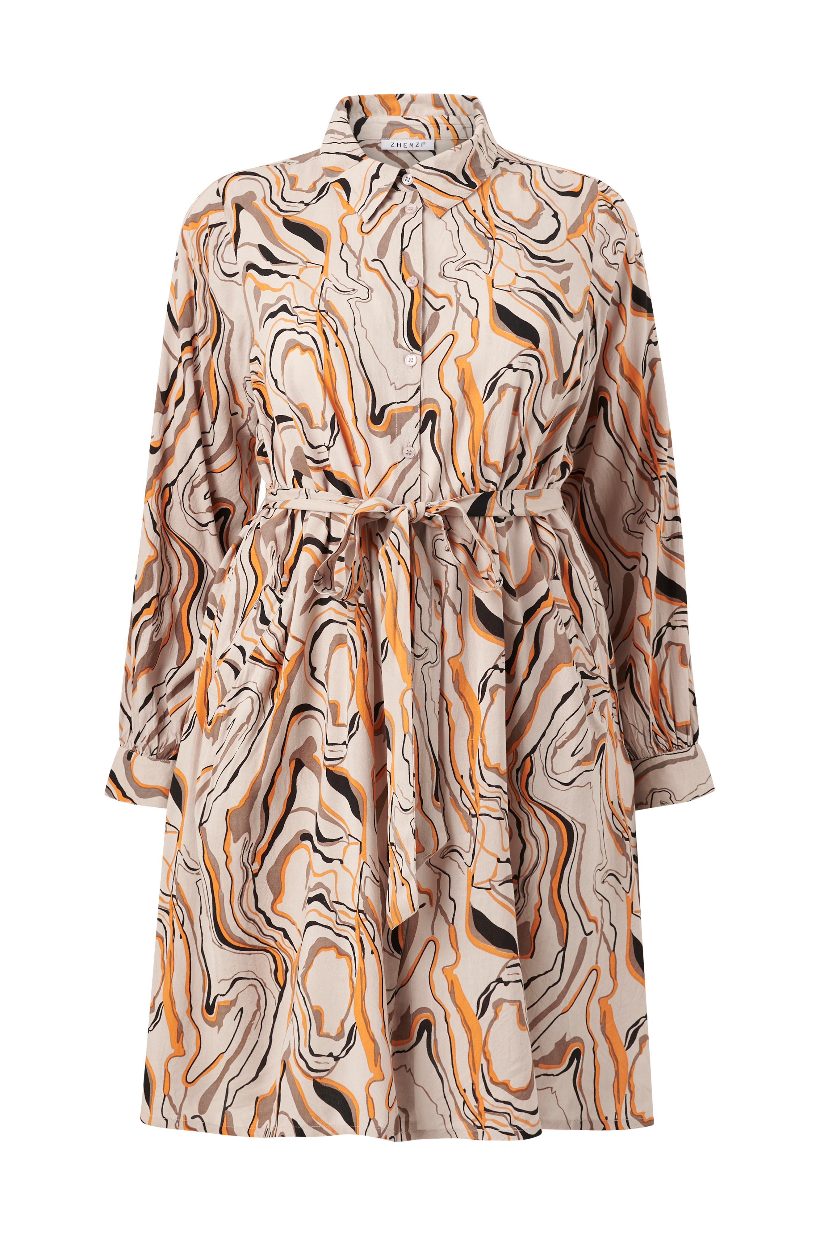 • Knapper foran• Bindebælte ved taljen• Lange ærmer med manchet• Lommer foran• Store størrelser• Længde: 100 cm i størrelse S