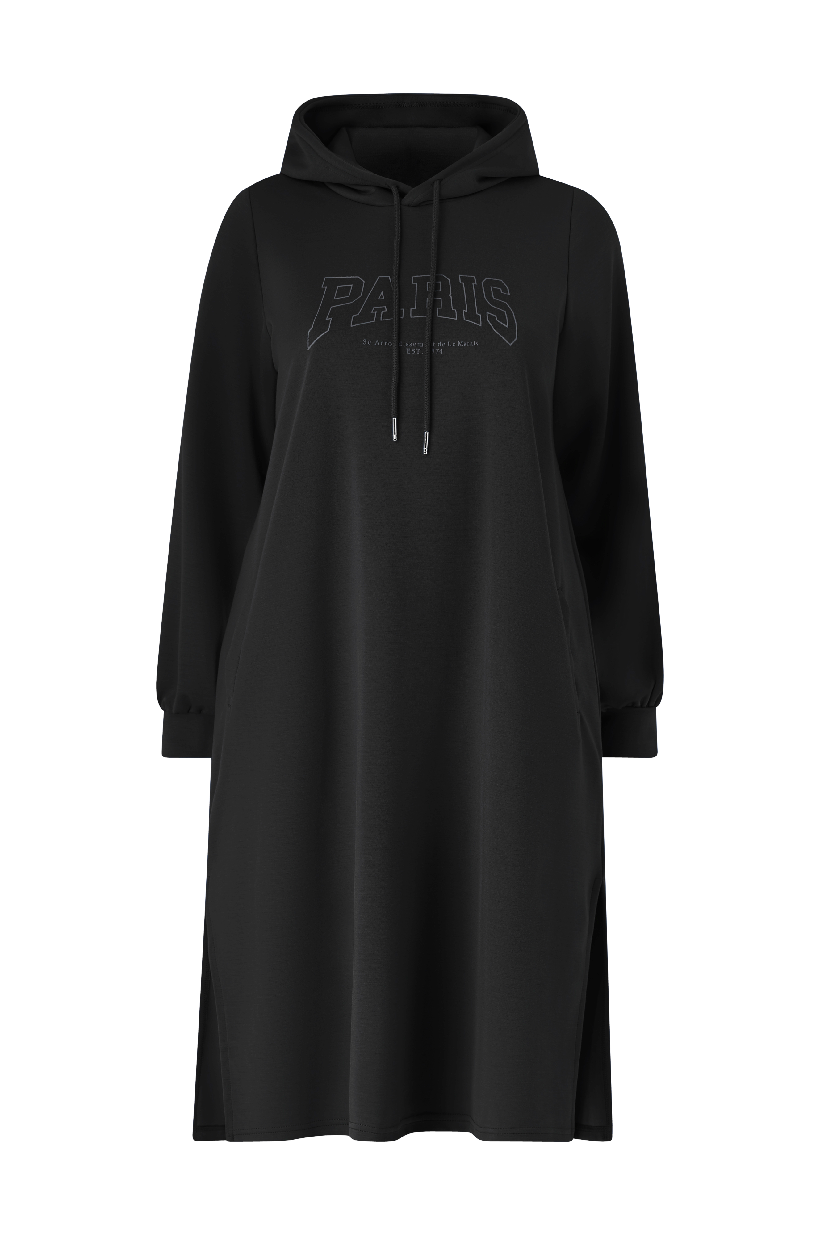 • Blød sweatshirtkjole i viskoseblanding• Justérbar hætte med træksnørre• Tryk på brystet• Lange ærmer med manchetter ved manchetterne• Sidelommer• Slids i siderne• Længde: 114 cm i størrelse S• Plusstørrelser