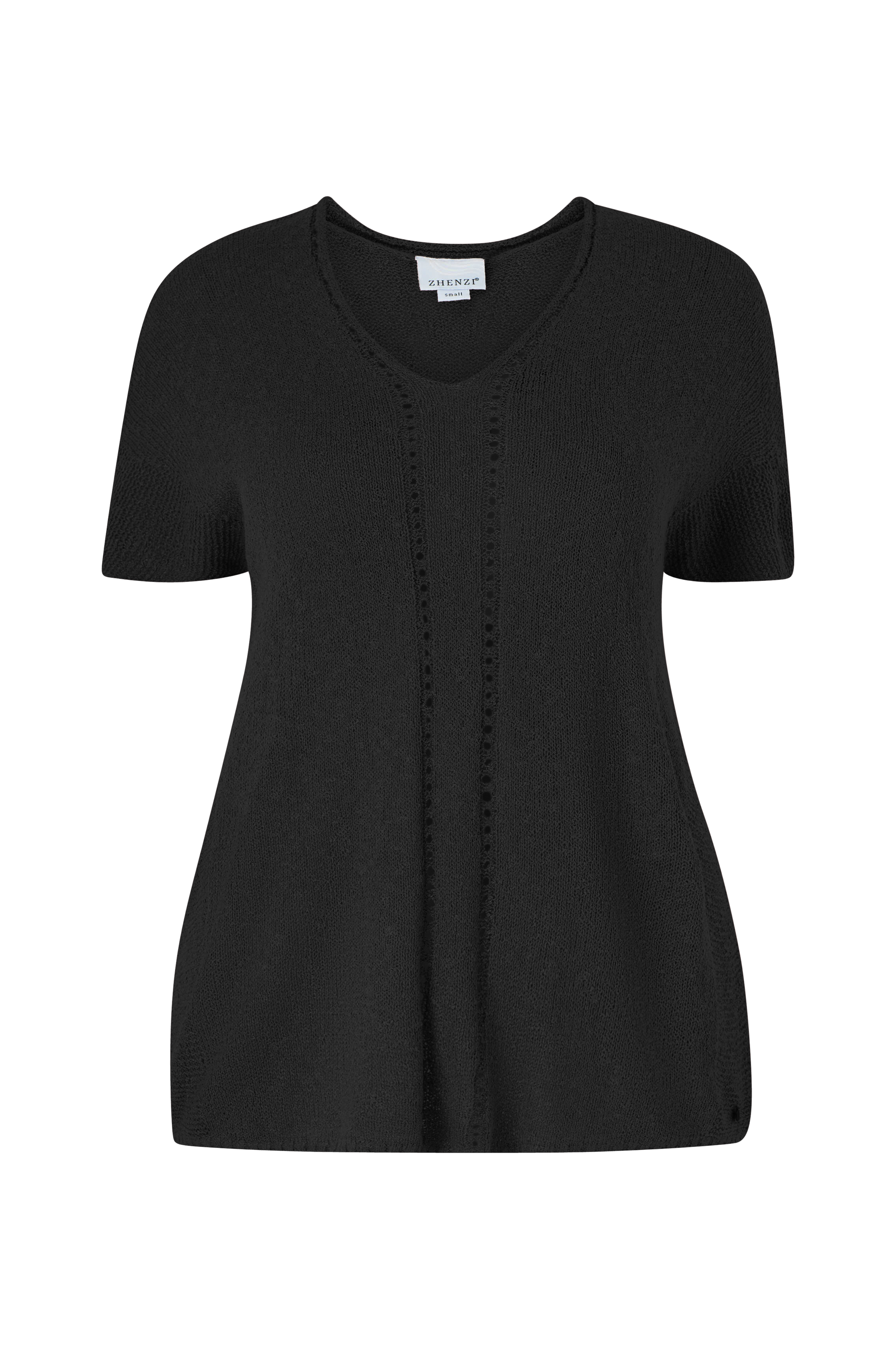 • Stor størrelse• Lige, bred model• V-formet halsudskæring• Mønsterstrikning midt foran• Nedsænket skulder
