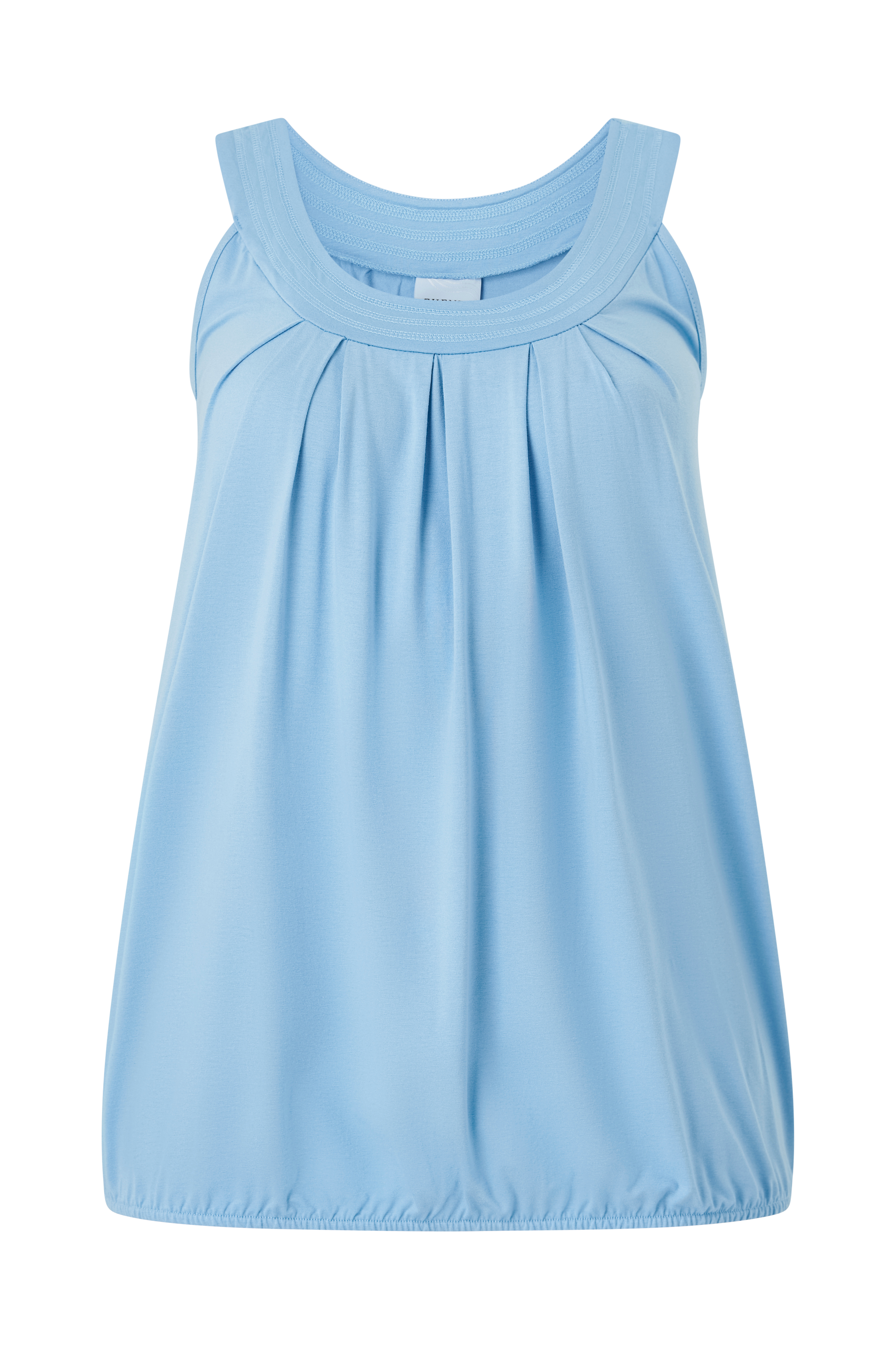 • Ærmeløs top i elastisk, blød viskose• Rund hals• Samling foran• Bølgeformet detalje på ryggen• Store størrelser