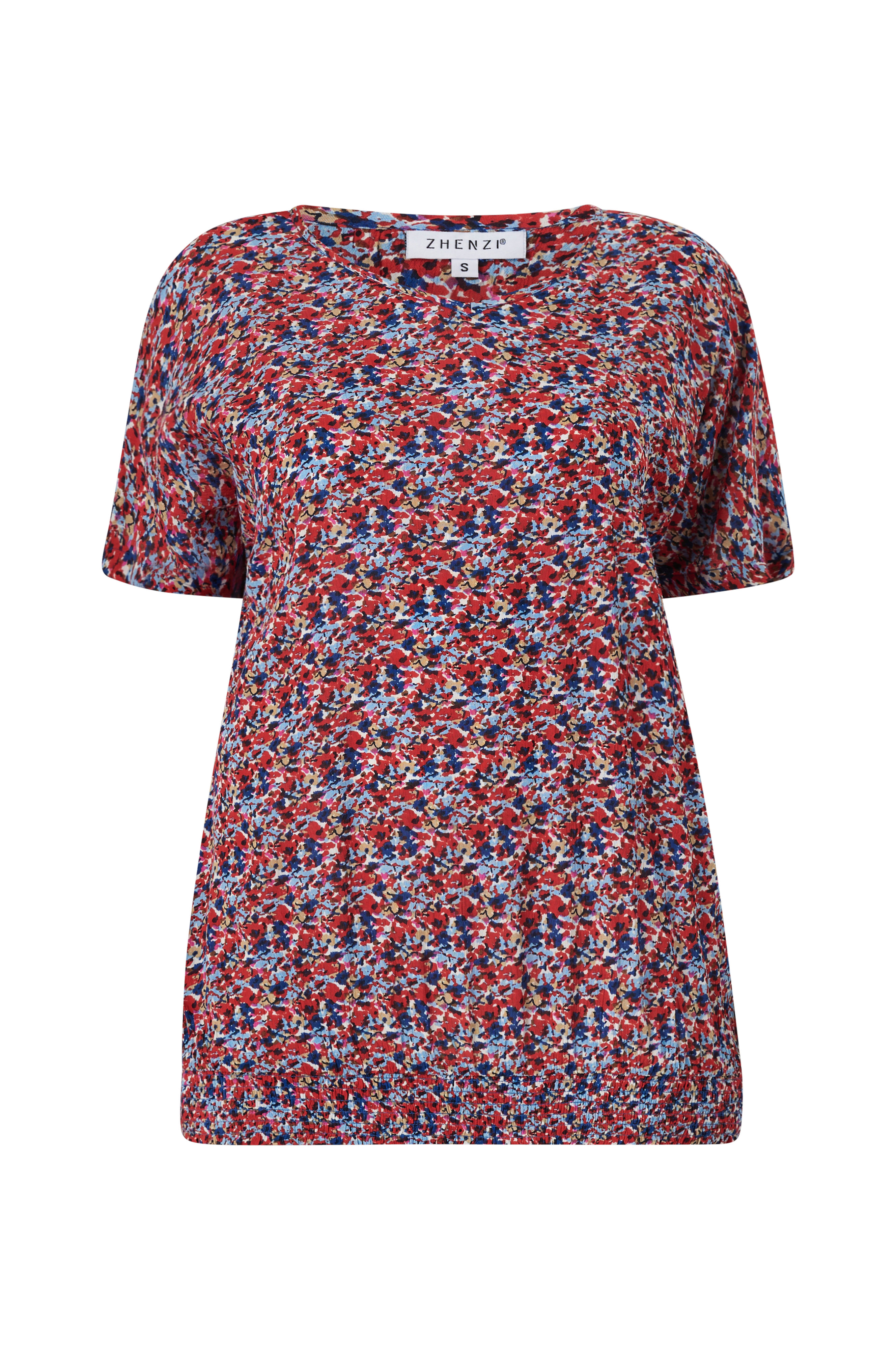 • Store størrelser• Lige model med uformel pasform• V-formet halsudskæring• Kort, kimonoskåret ærme• Elastisk smock ved nederste kant