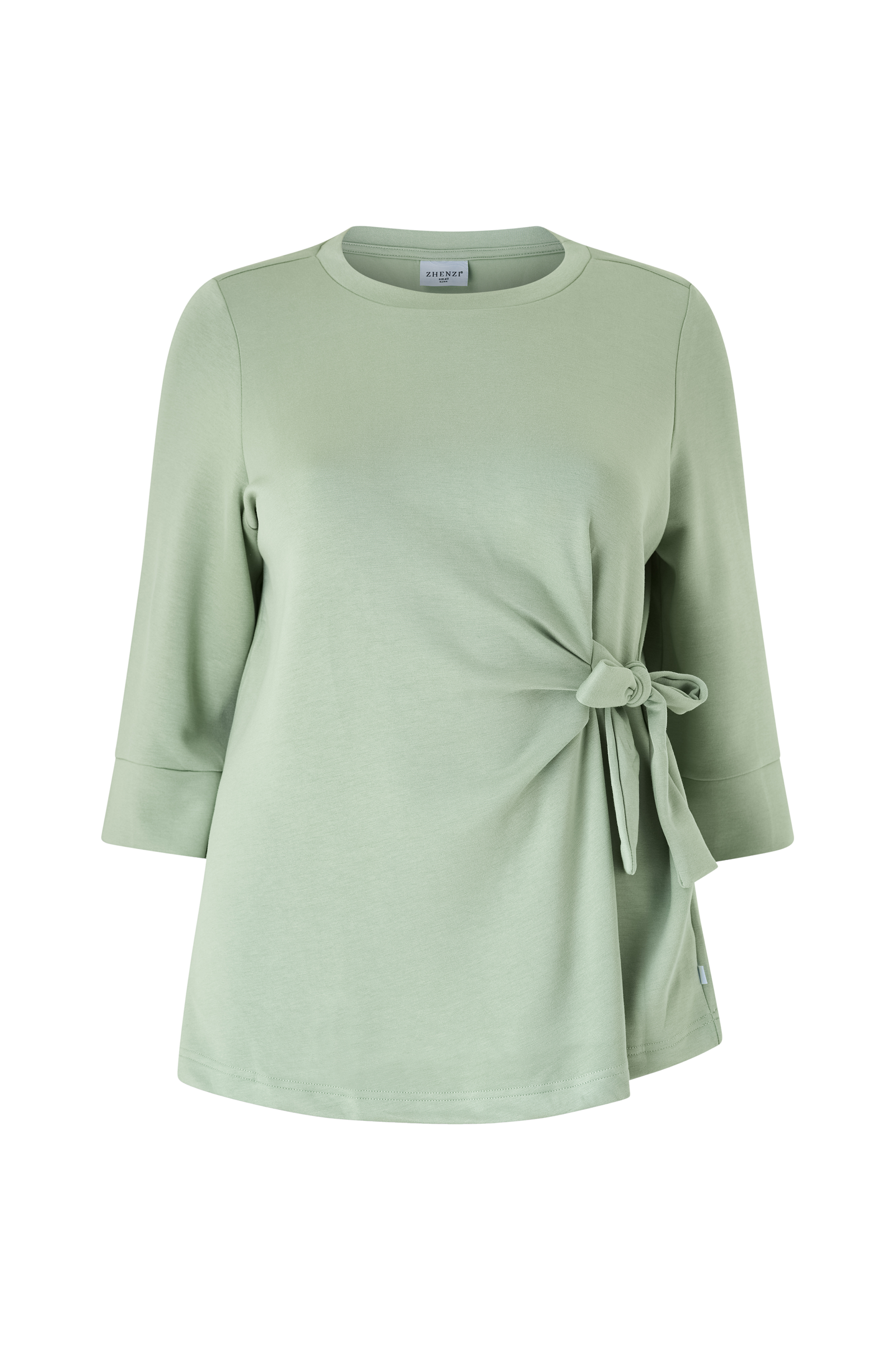 • Top i blød, elastisk sweatshirt• Rund halsudskæring• 3/4 lange ærmer• Dekorativ knudedetalje i siden• Plusstørrelser