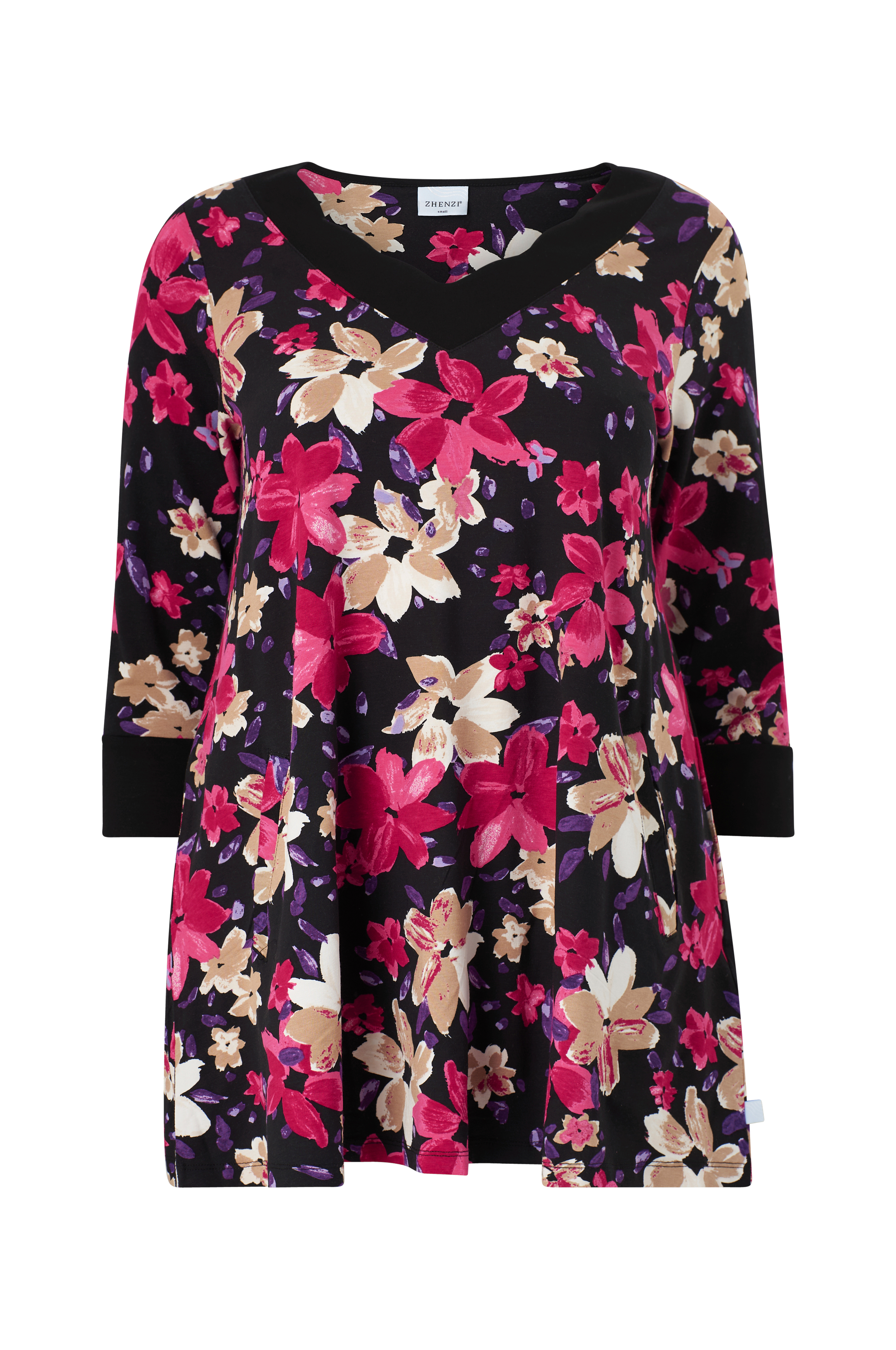 • Tunika i elastisk viskosejersey• V-formet halsudskæring• 3/4 lange ærmer med manchetter ved manchetterne• Store størrelser• Længde: 82 cm i størrelse S