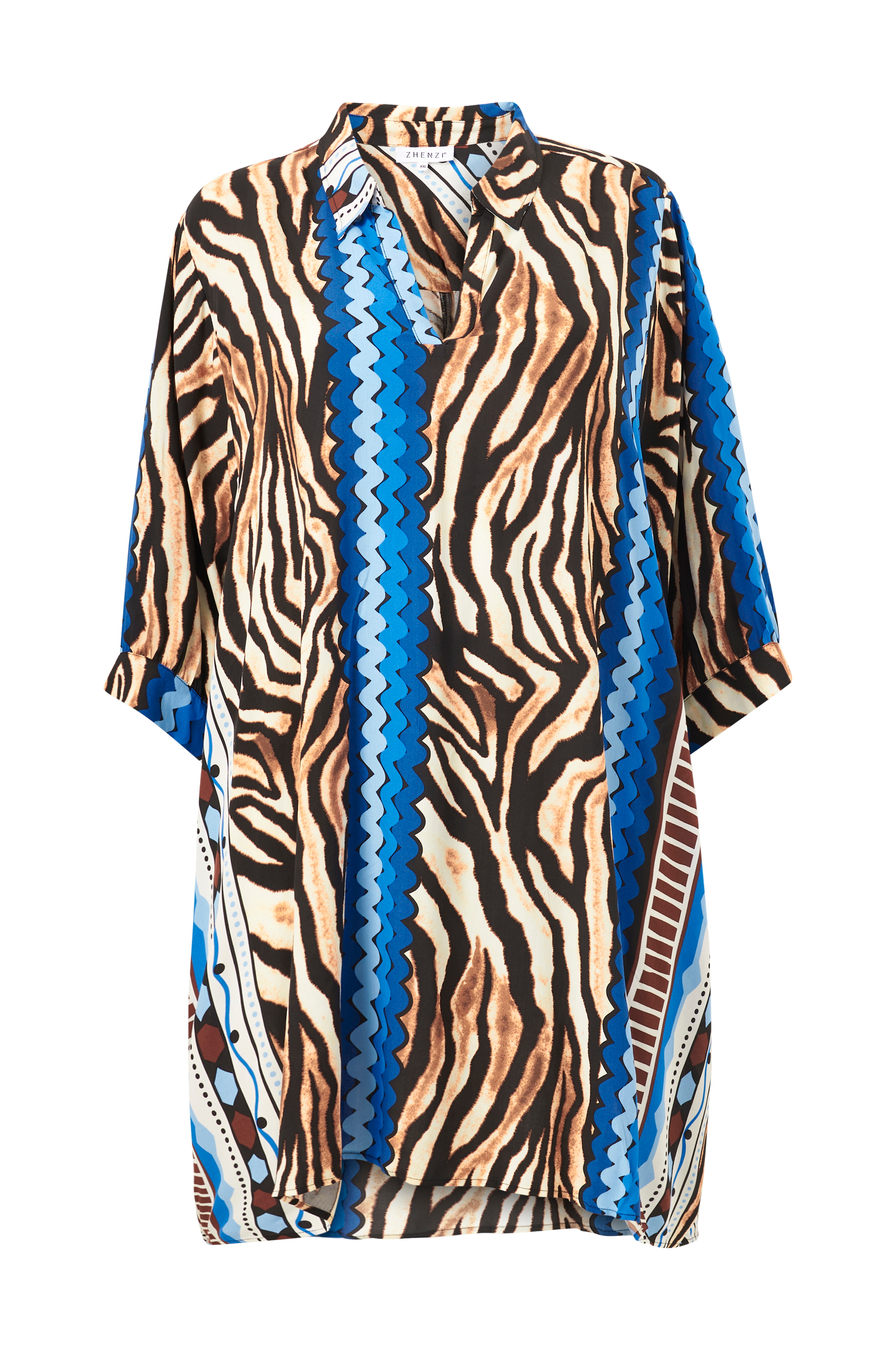 • Løs pasform• V-udskæring• Kort ærme• Lidt længere bagtil• Længde: 113 cm i størrelse 2XL