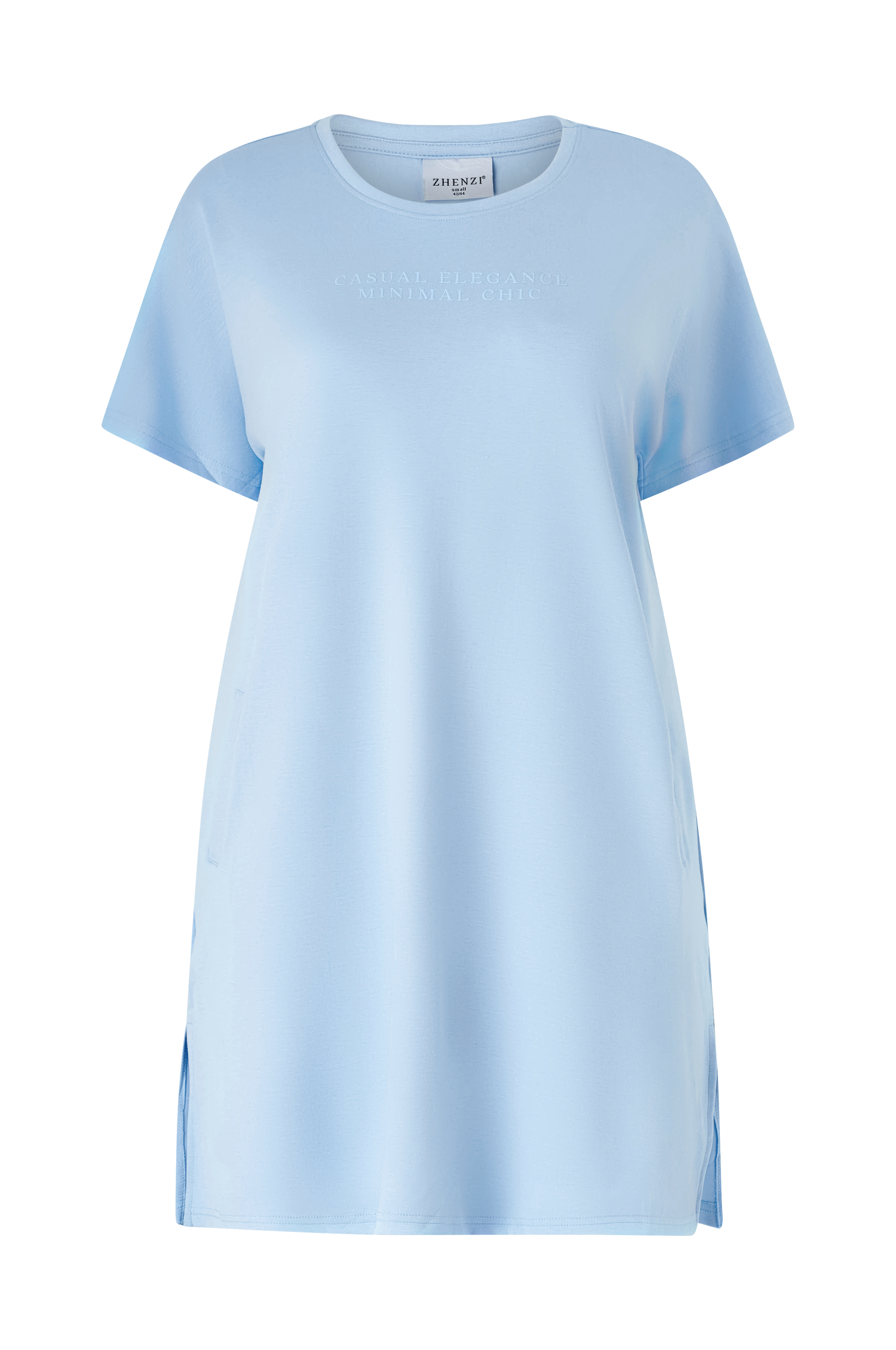 • Fremstillet af blød, elastisk jersey• Rund halsudskæring• Lille tryk foran• Kort ærme• Slidser i siderne• Store størrelser• Længde: 95 cm i størrelse S