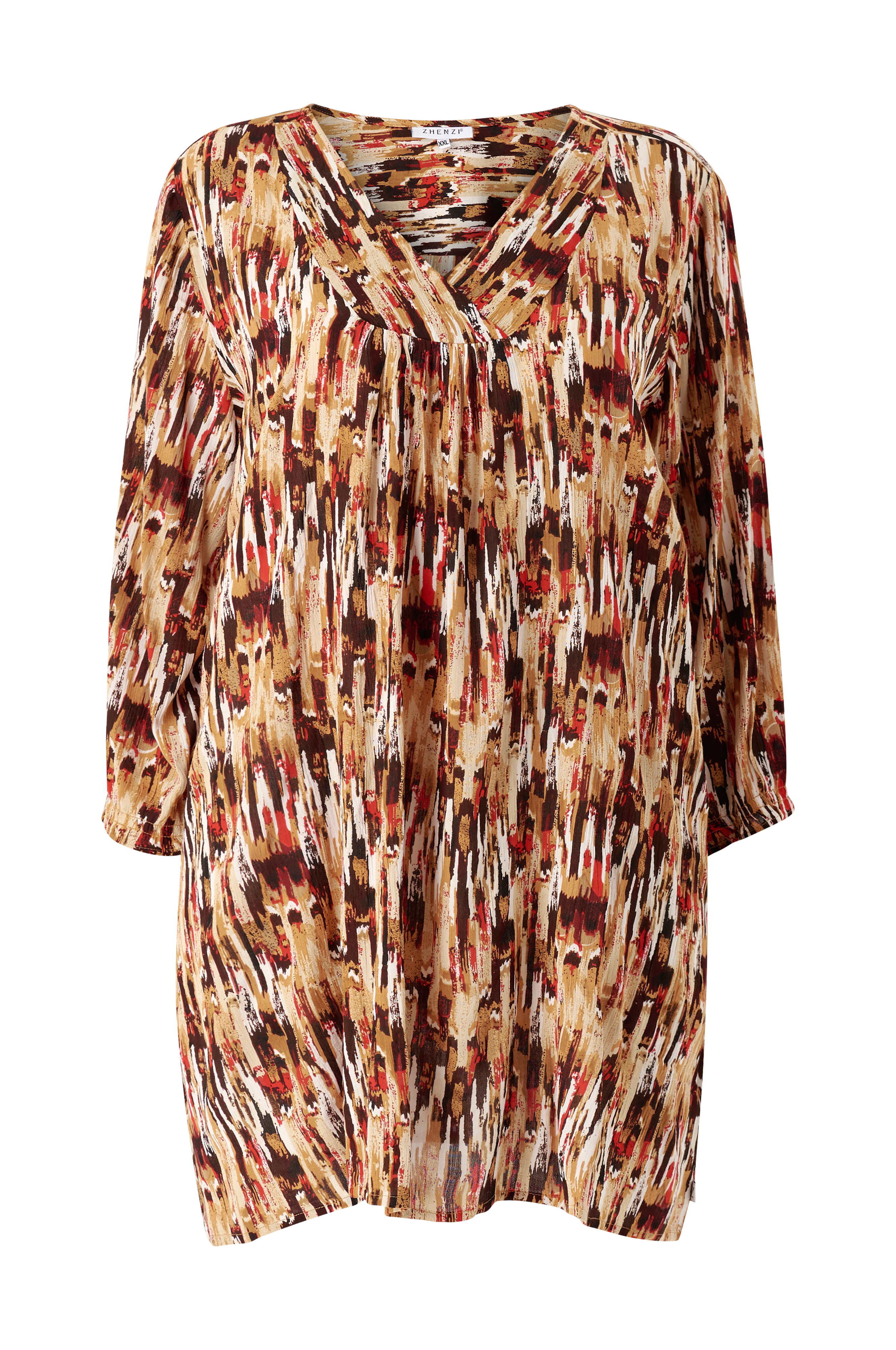 • A-linje design• V-udskæring• Lange ballonærmer med elastik ved manchetterne• Rynket kvalitet• Store størrelser• Længde: 95 cm i størrelse XXL