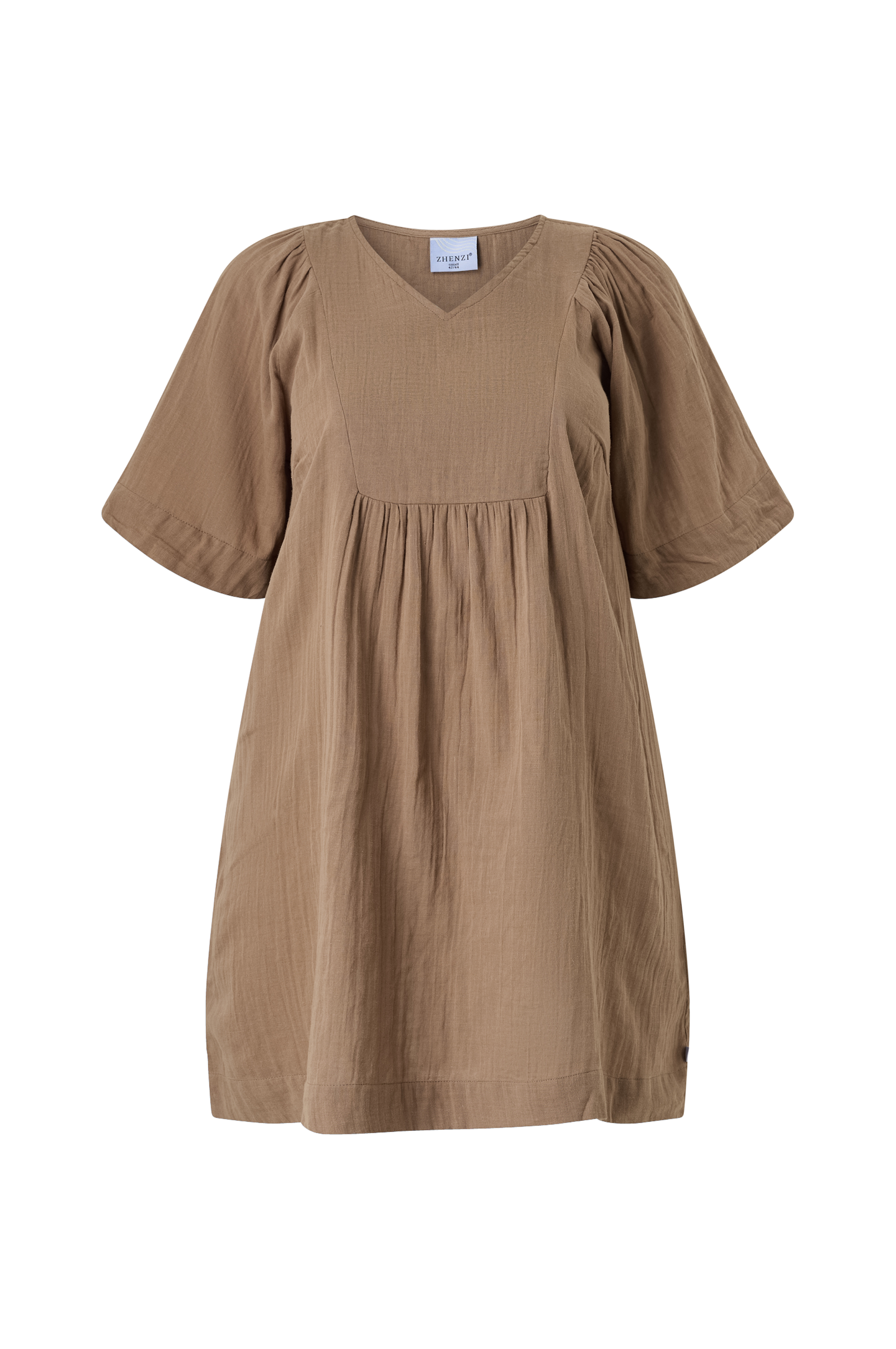 • Tunika i bomuldsmuslin• V-formet halsudskæring• Halvlange pufærmer• Plusstørrelser• Længde: 94 cm i størrelse S