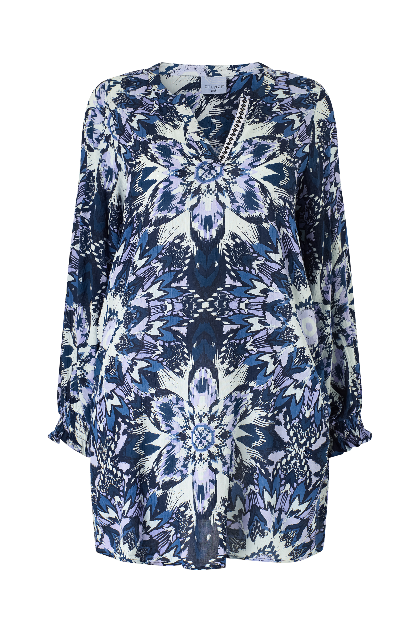 • Tunika i viskose• V-udskæring• Lange ballonærmer• Smock ved manchetterne• Sidelommer• Plusstørrelser• Længde: 96 cm i størrelse S